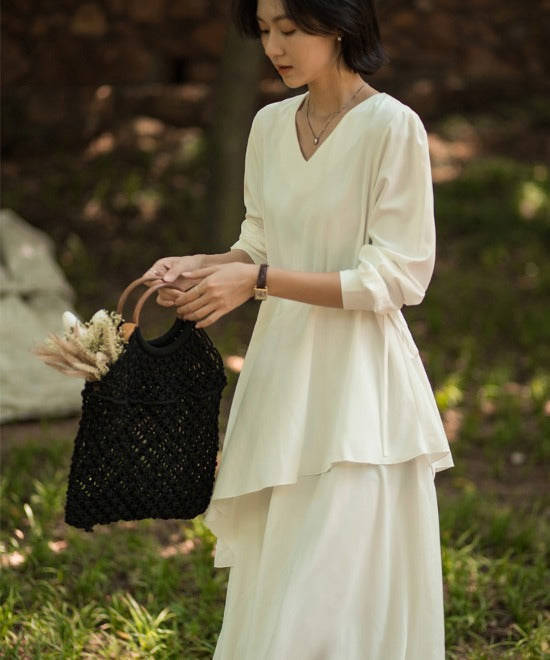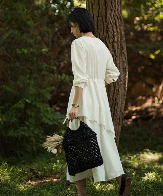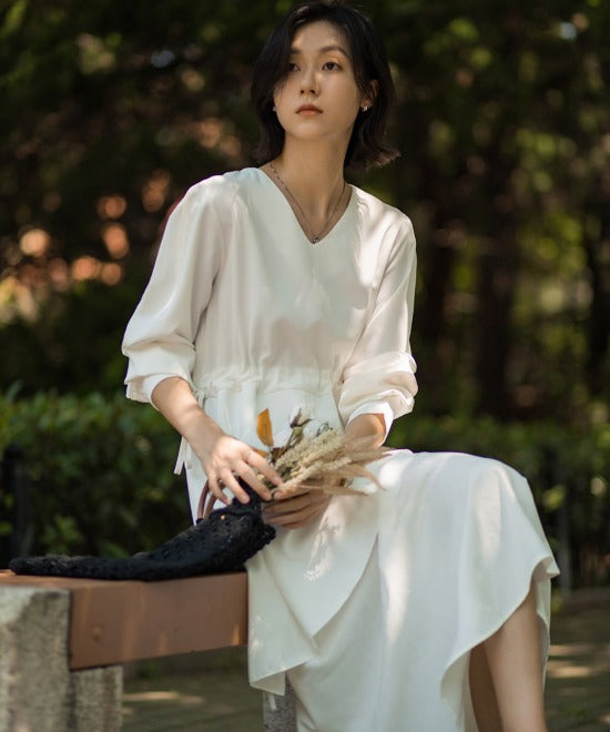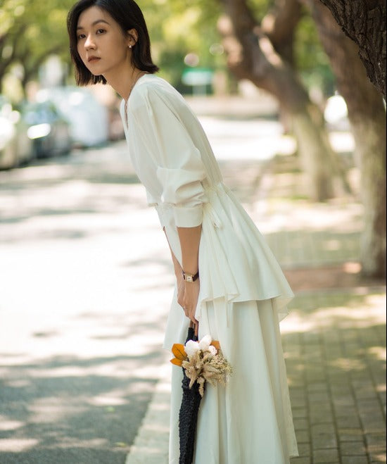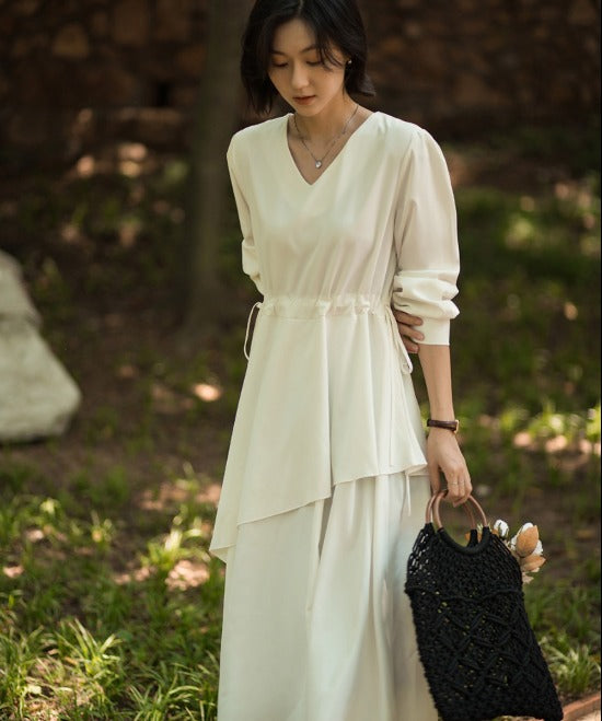 ウエストギャザーからイレギュラーヘムデザインまでスタイルアップが叶う主役級ワンピース。ポリエステルでしわになりにくく上品な落ち感を楽しめます。小物で雰囲気を変えて楽しむのがおすすめ◎
