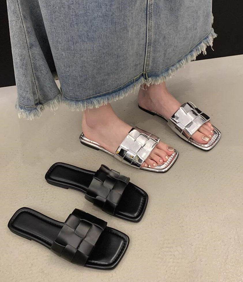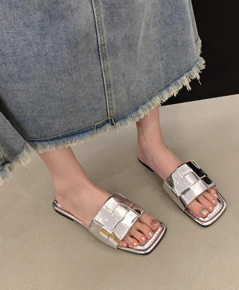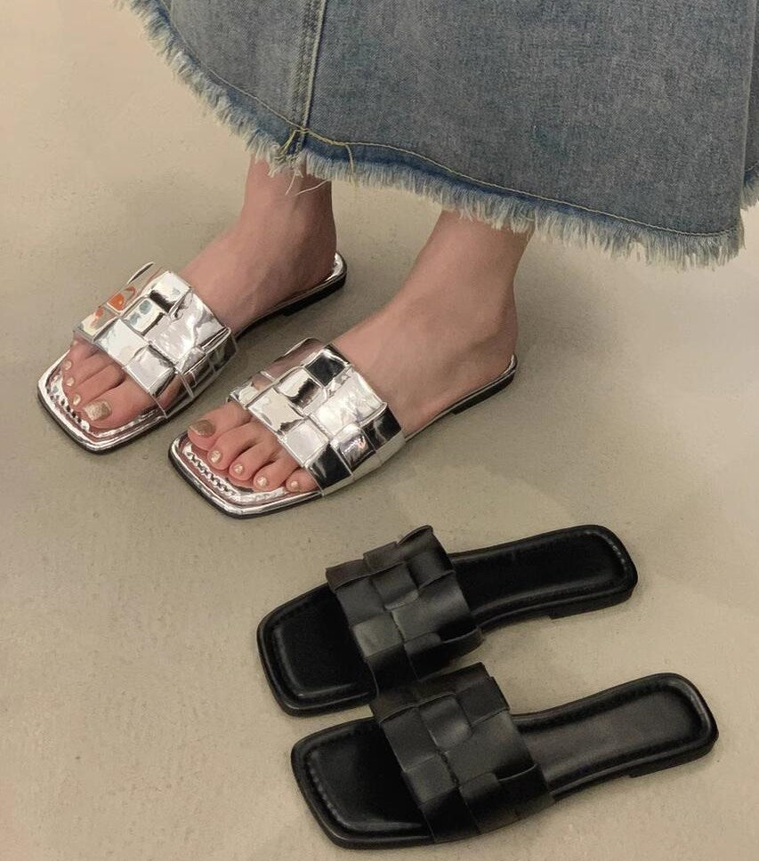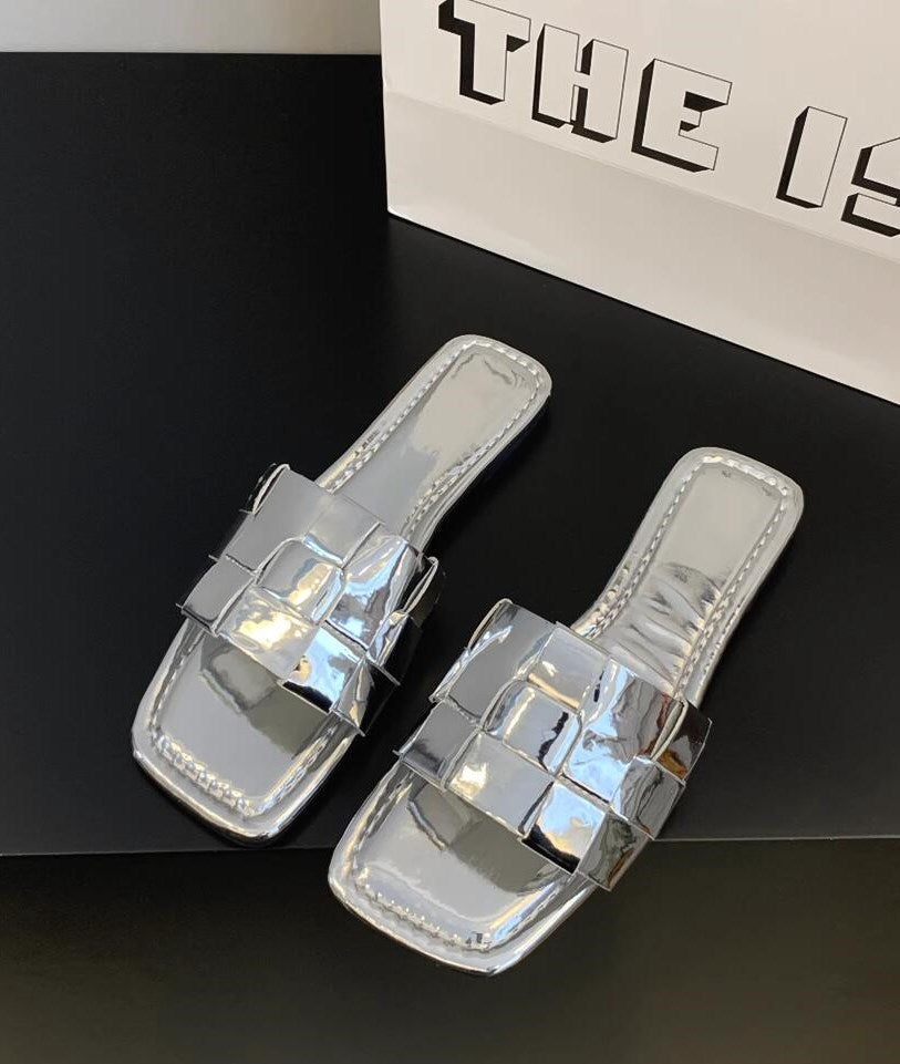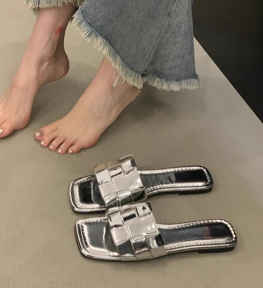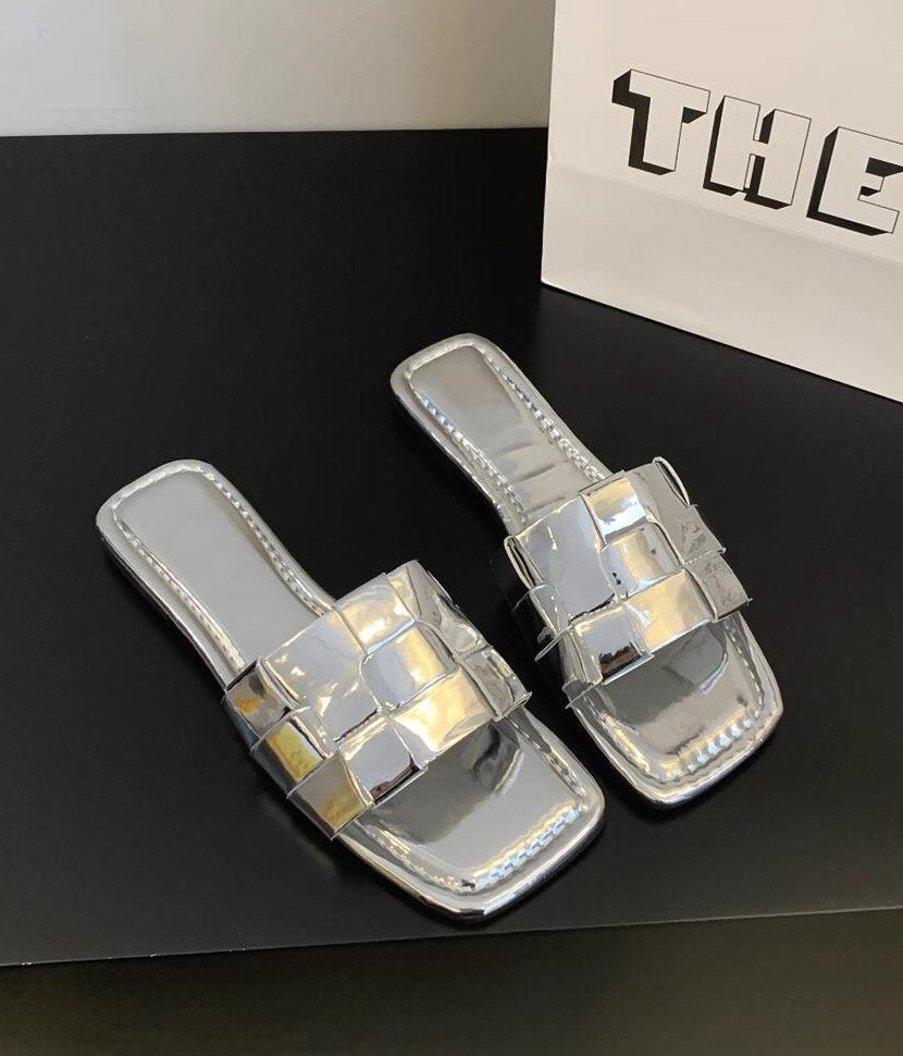 アウターフラットシルバーサンダルシューズ