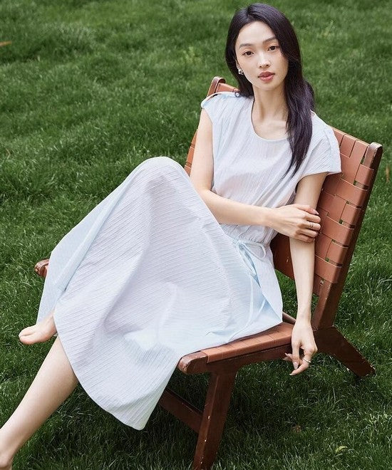 ストライプルーズノースリーブロングワンピース