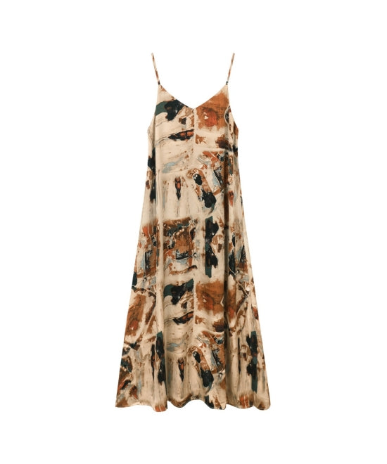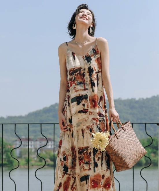 大胆なアートプリントが特徴で、夏にぴったりのアイテム。ロング丈でありながら、軽やかで涼しげな雰囲気を持ち、自然なドレープ感が女性らしさを引き立てます。夏の旅行や海へのお出かけにも最適で、リゾート感あふれるスタイルを楽しむことができます。快適な素材を使用しているため、暑い季節でも心地よく過ごせます。