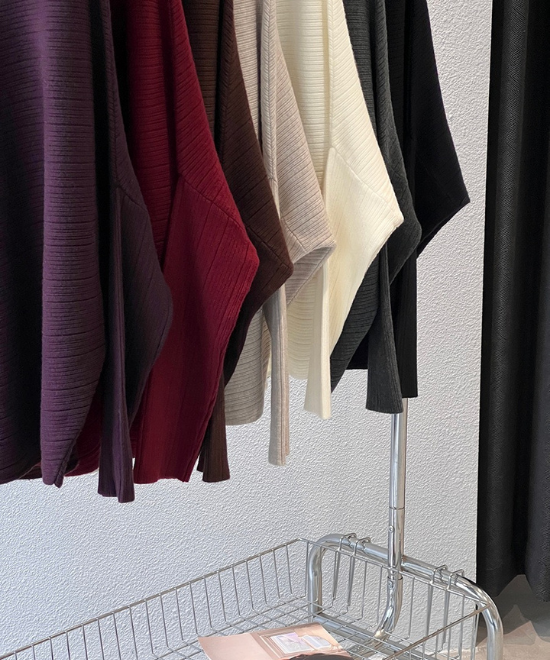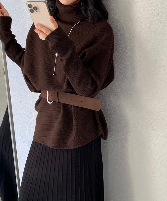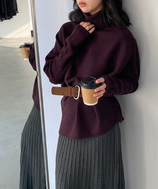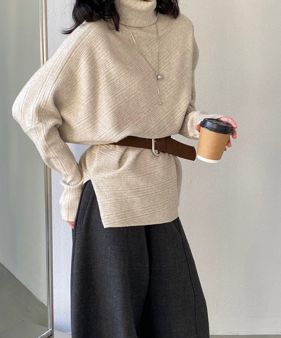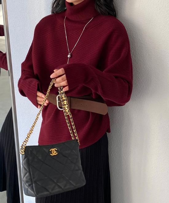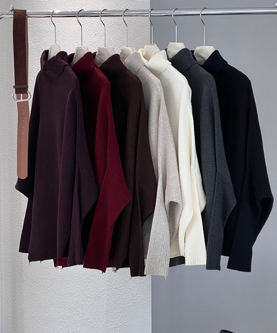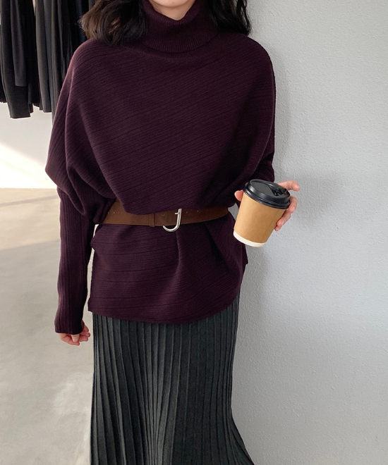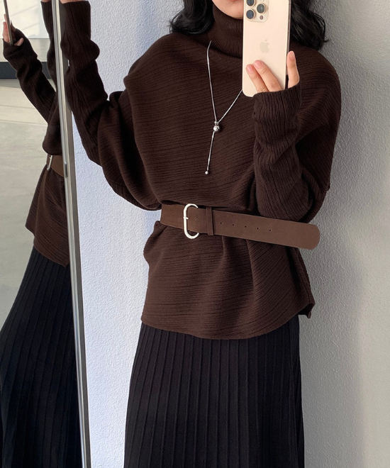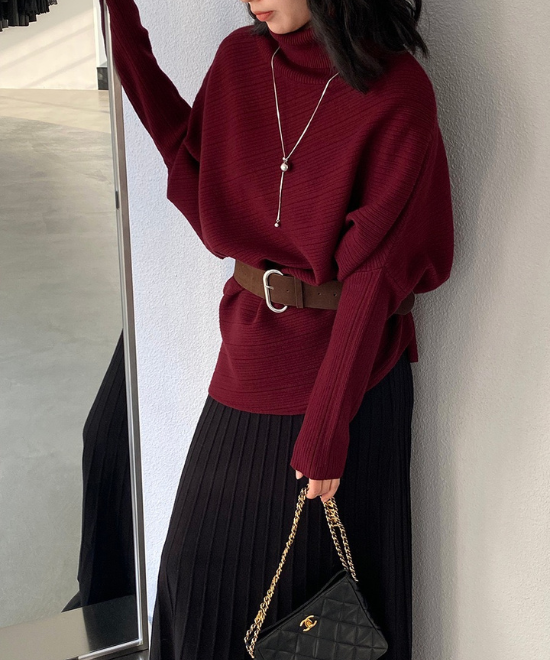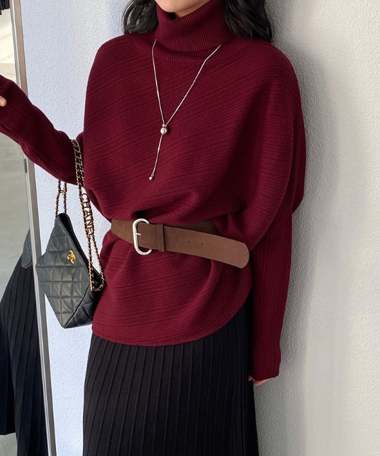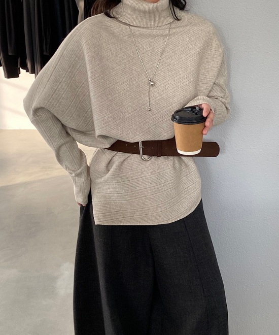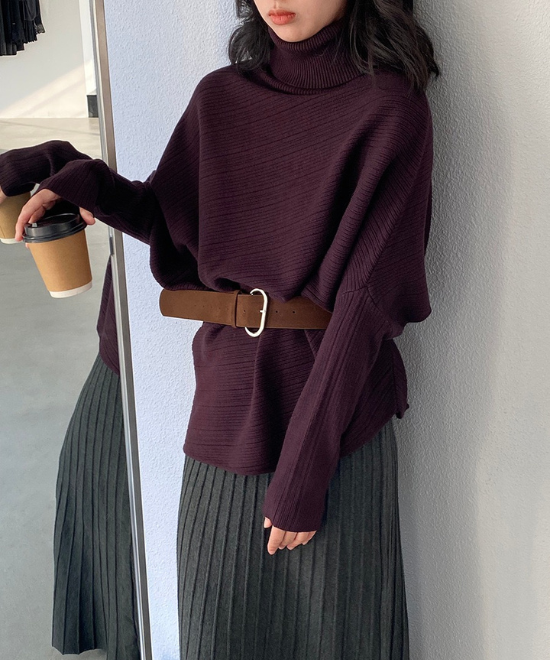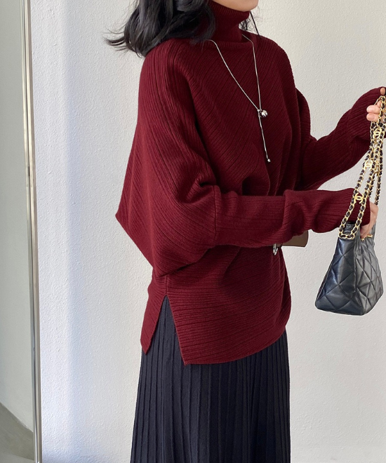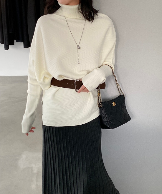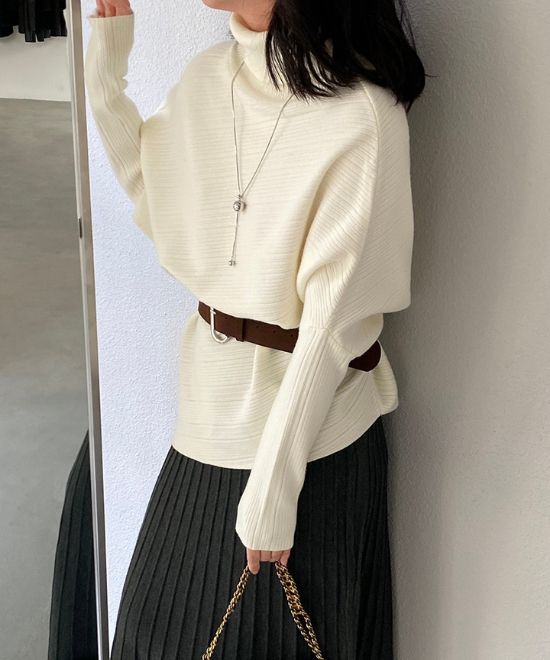ハイネックドルマンスリーブトップス