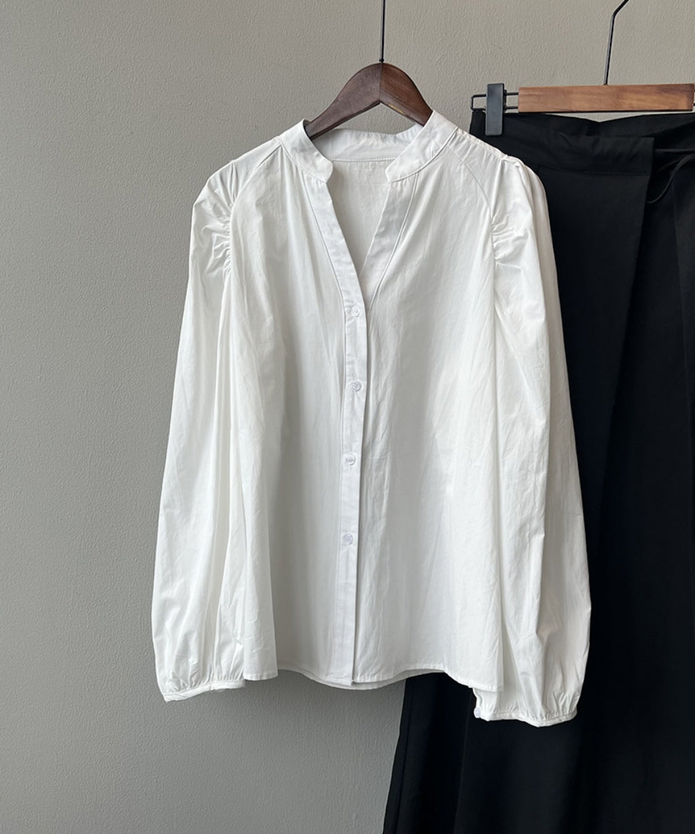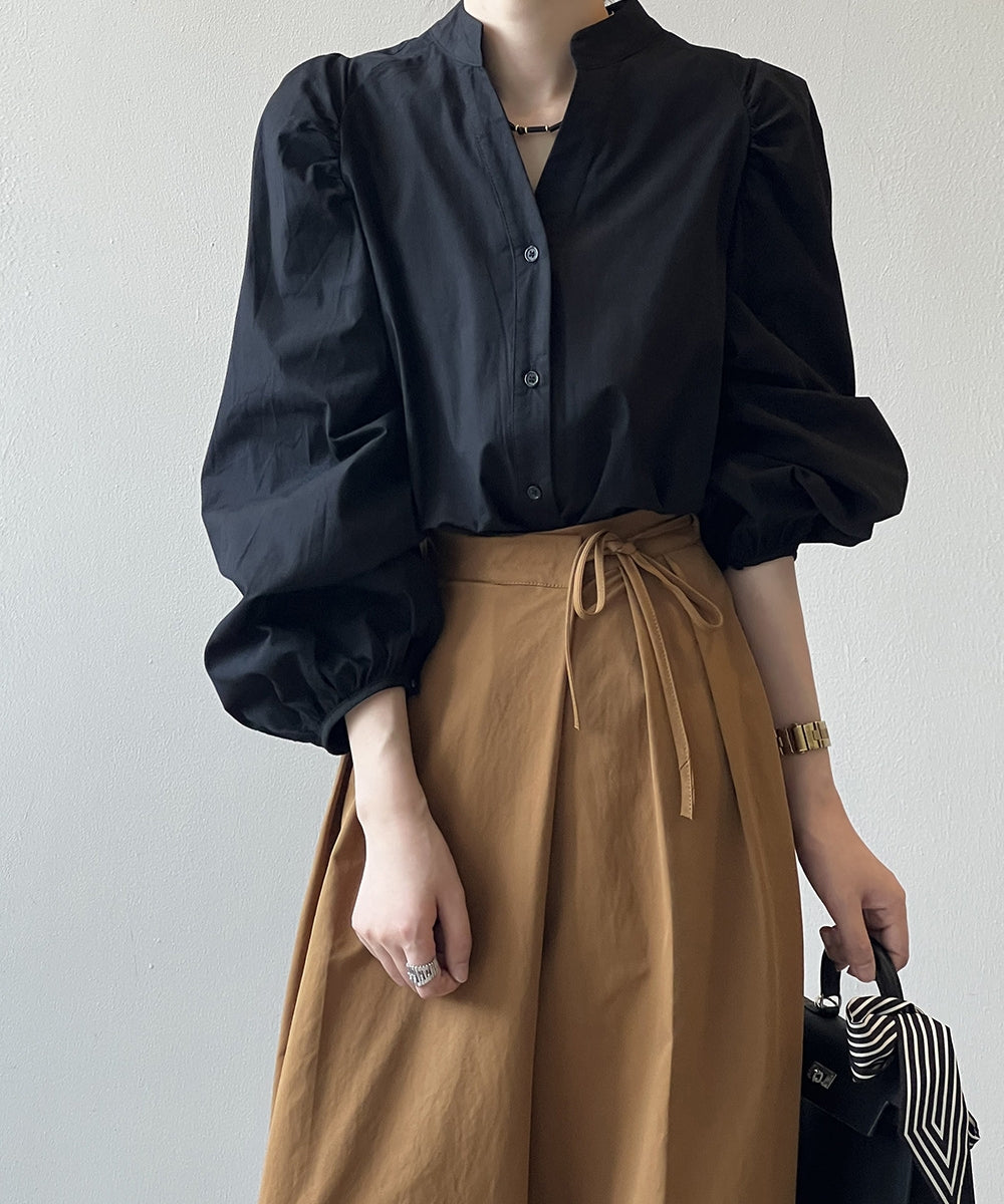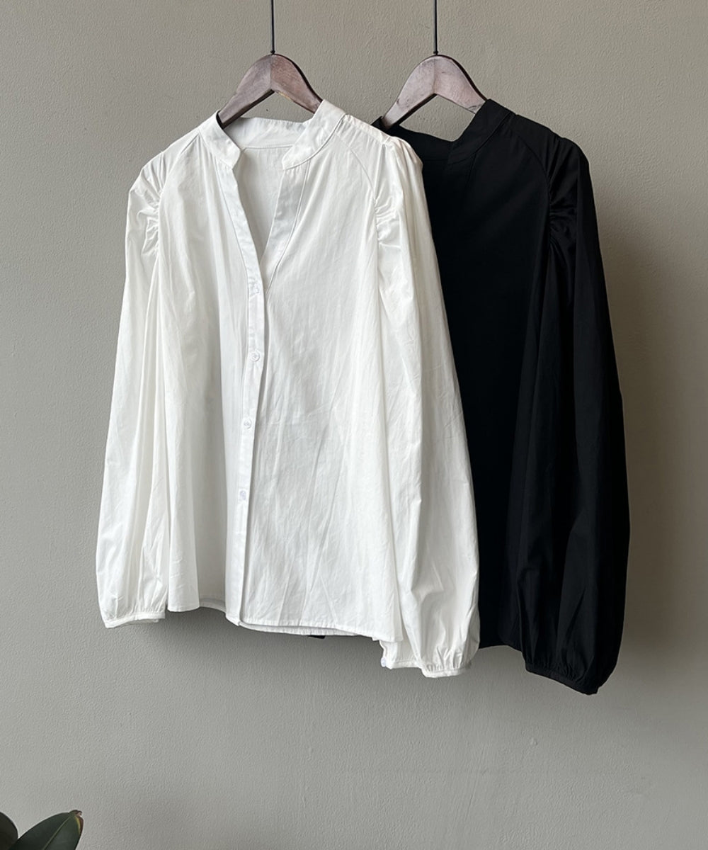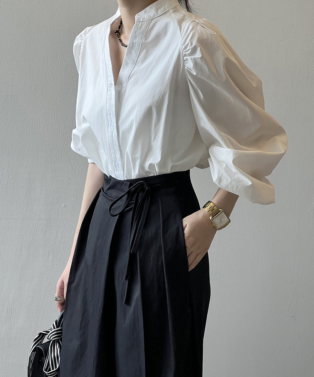 Stand color V -neck shirt