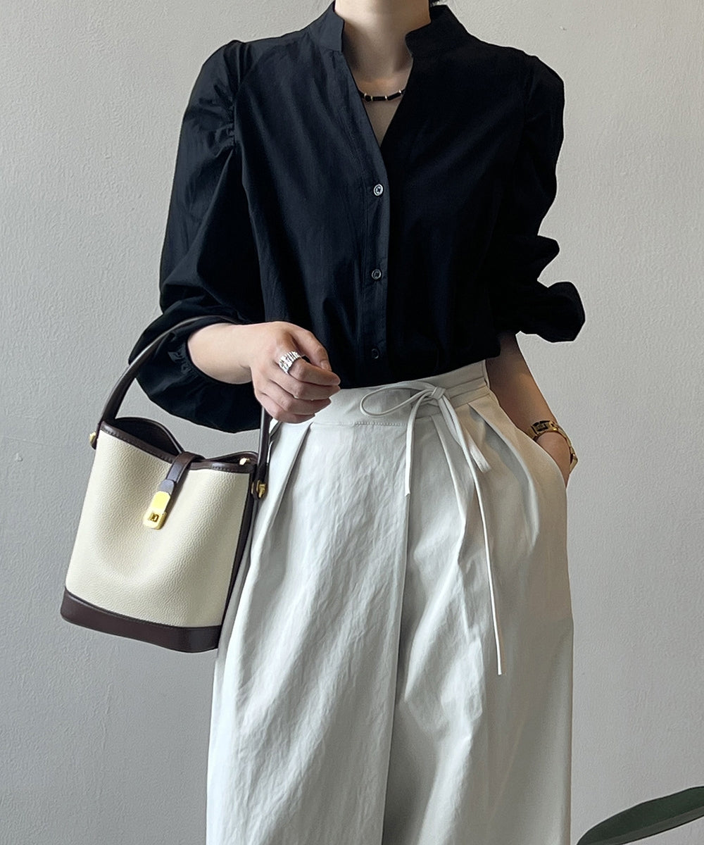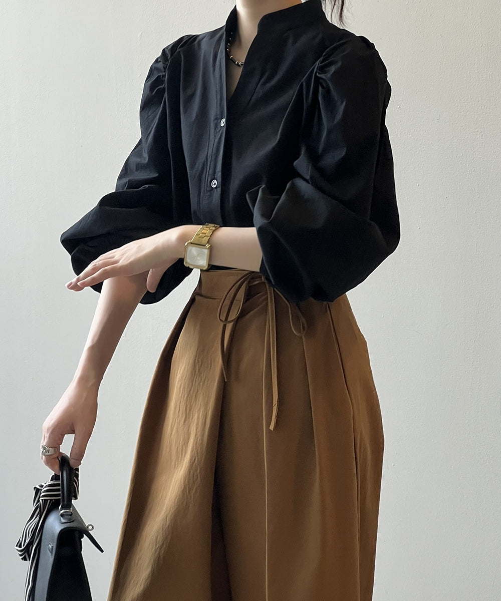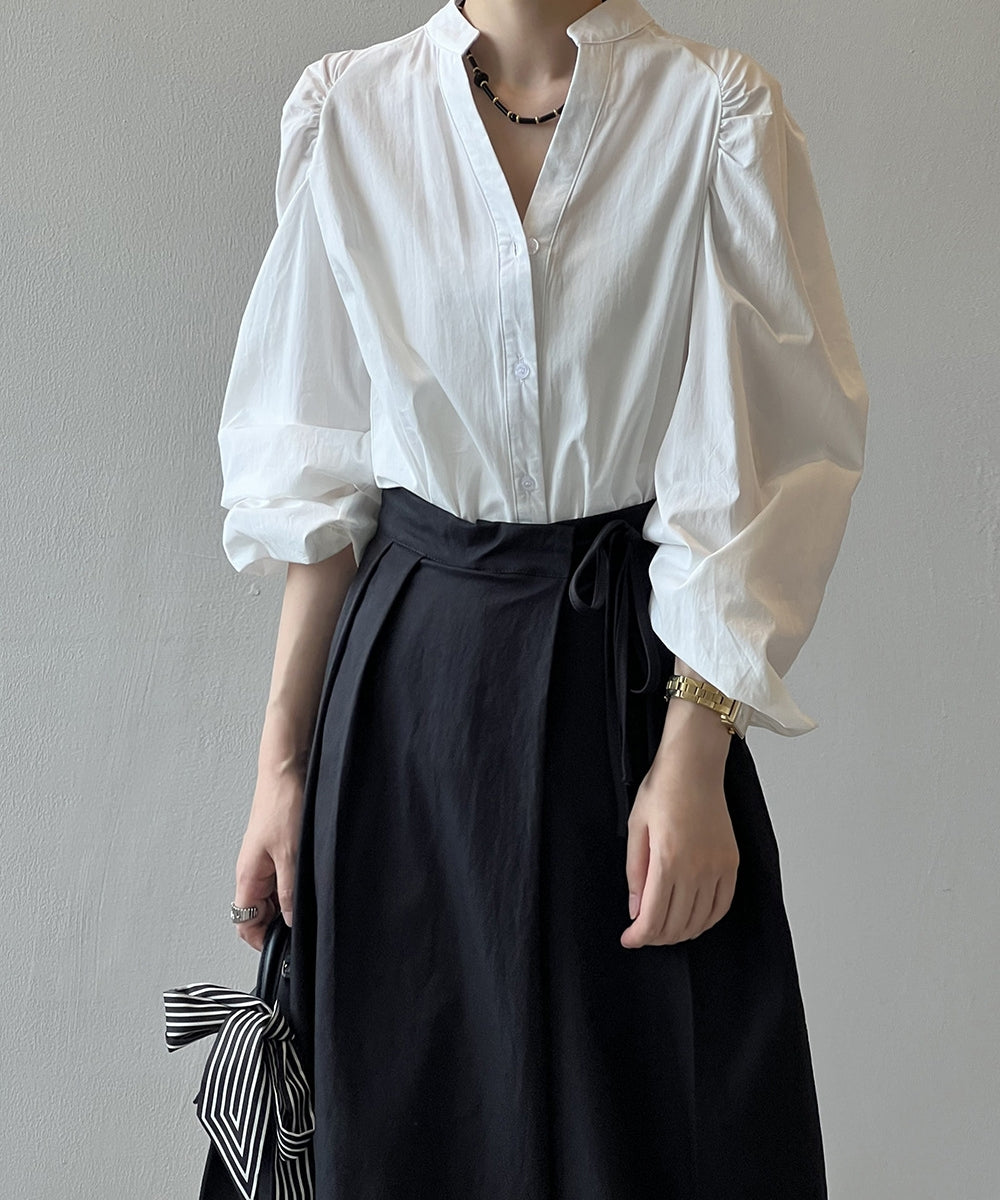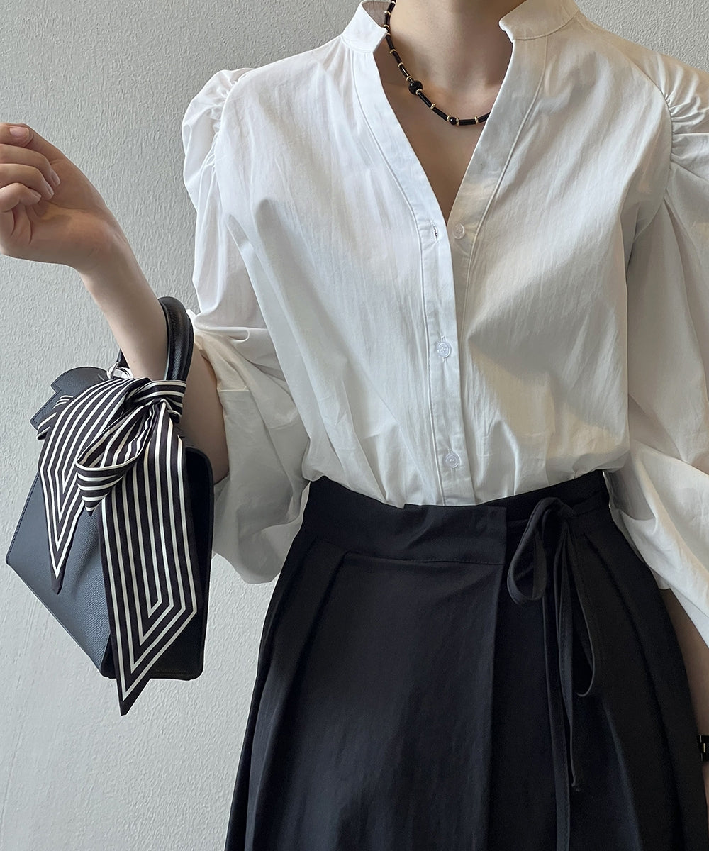 Stand color V -neck shirt