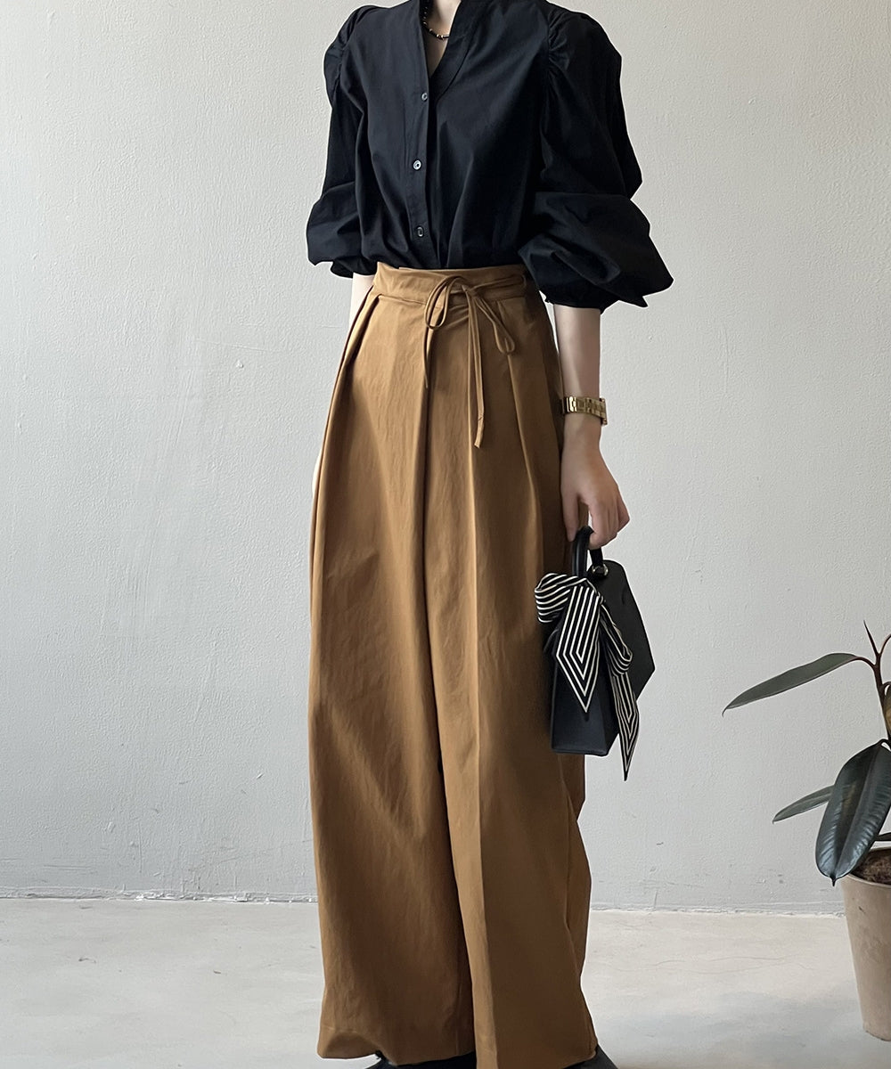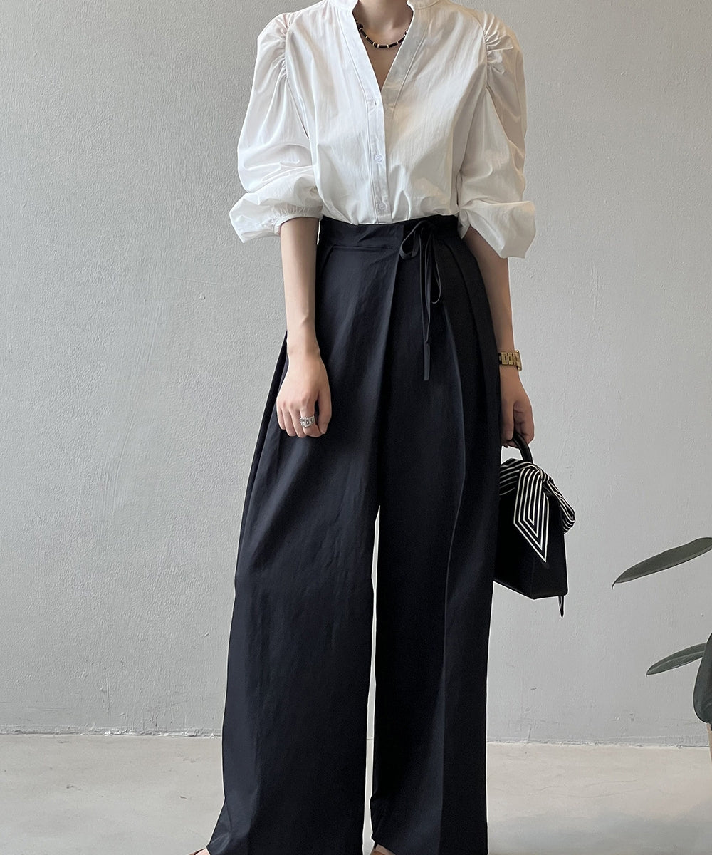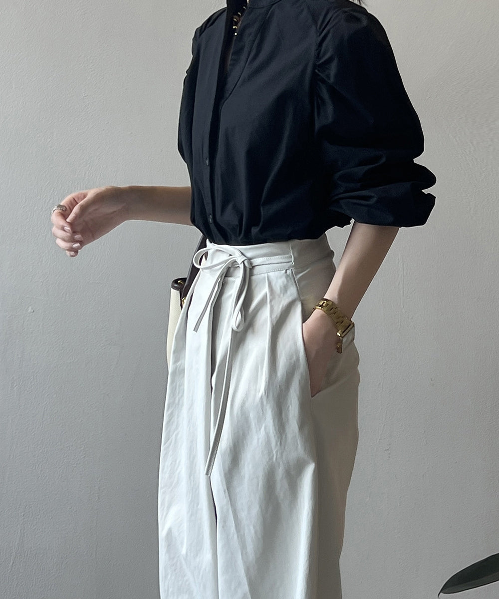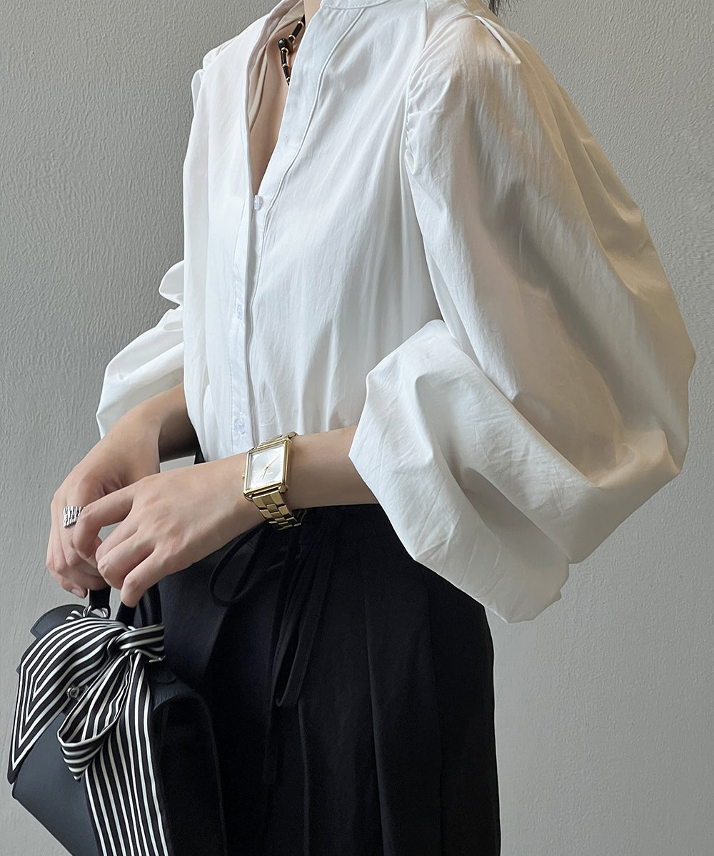Stand color V -neck shirt