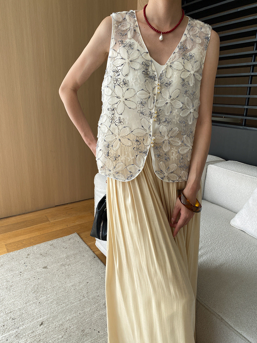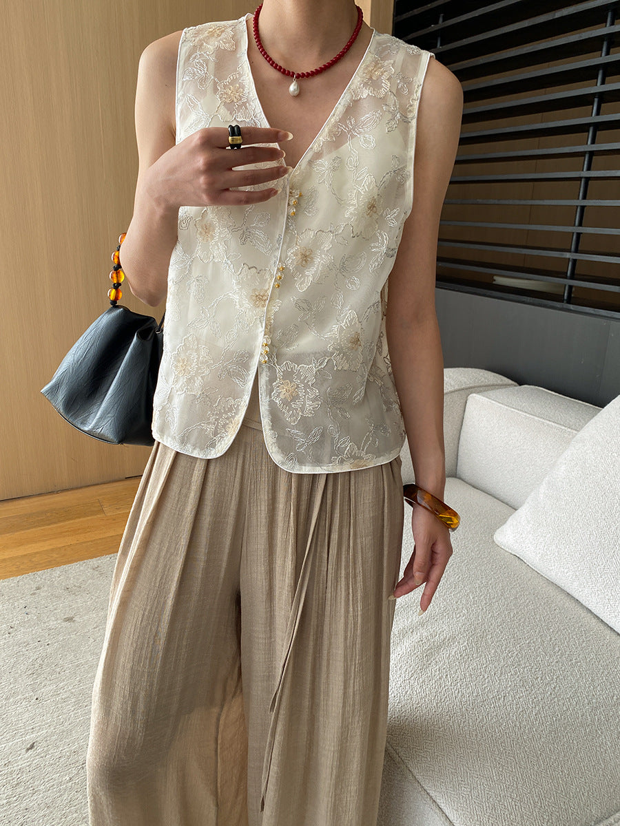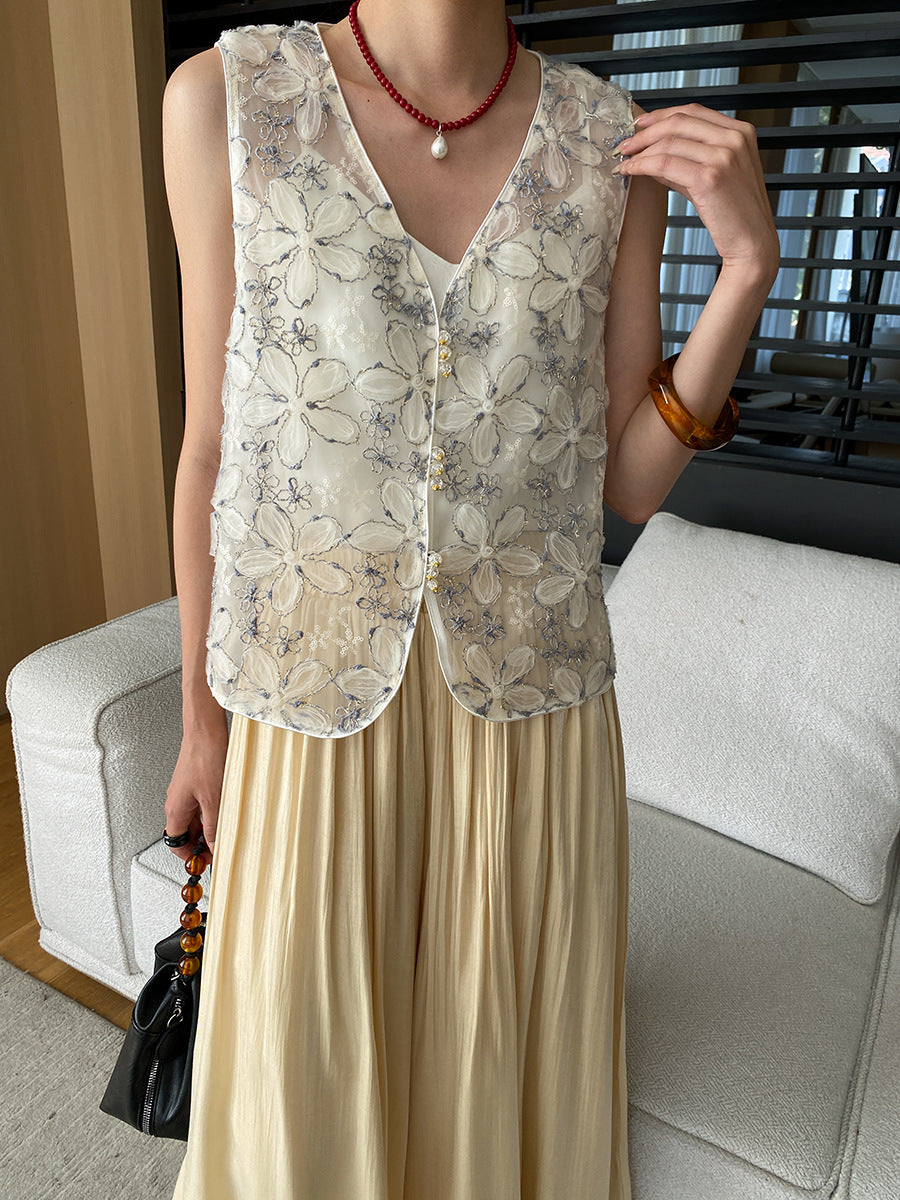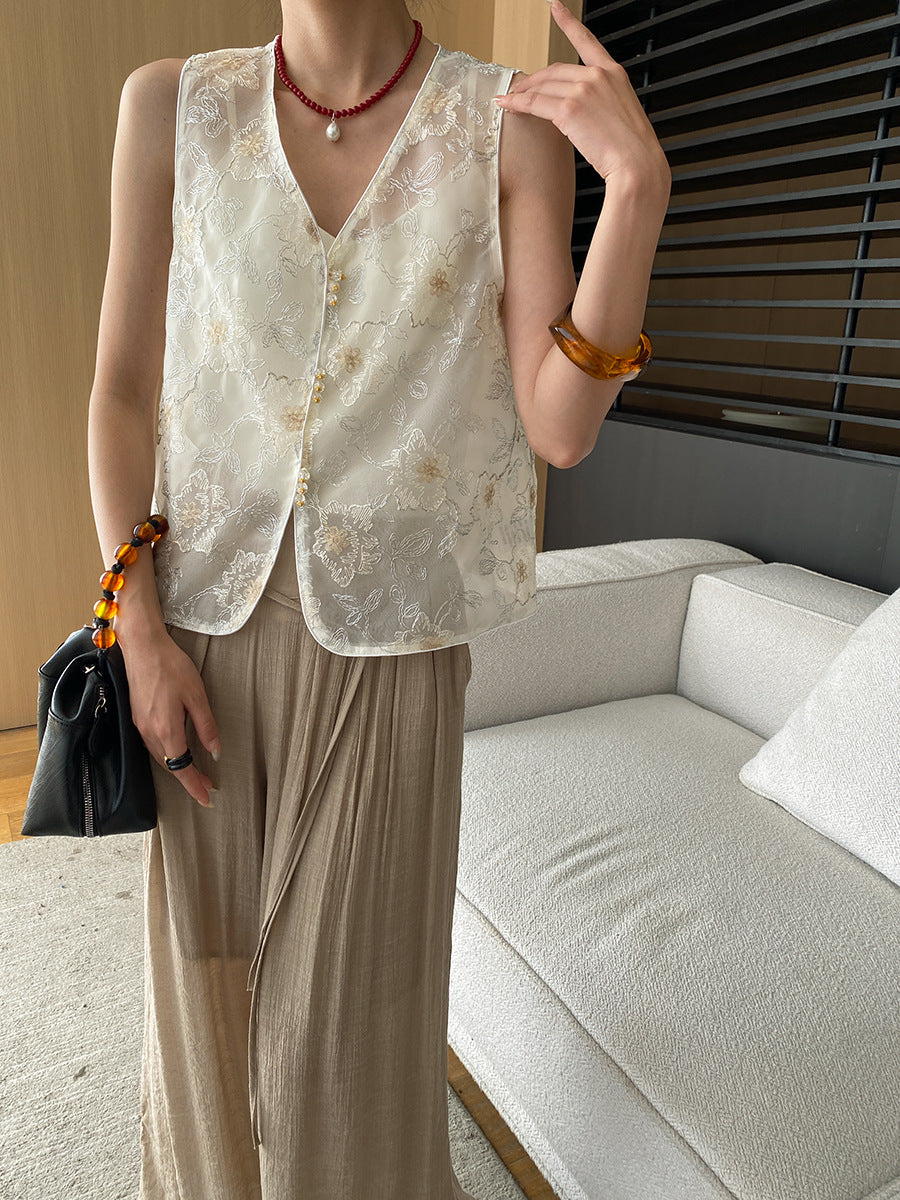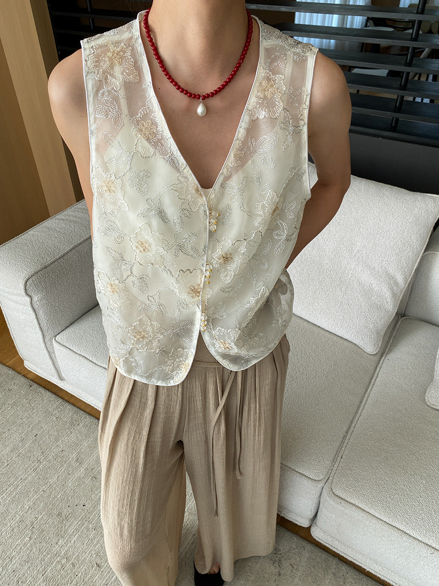 レースメッシュベストトップス