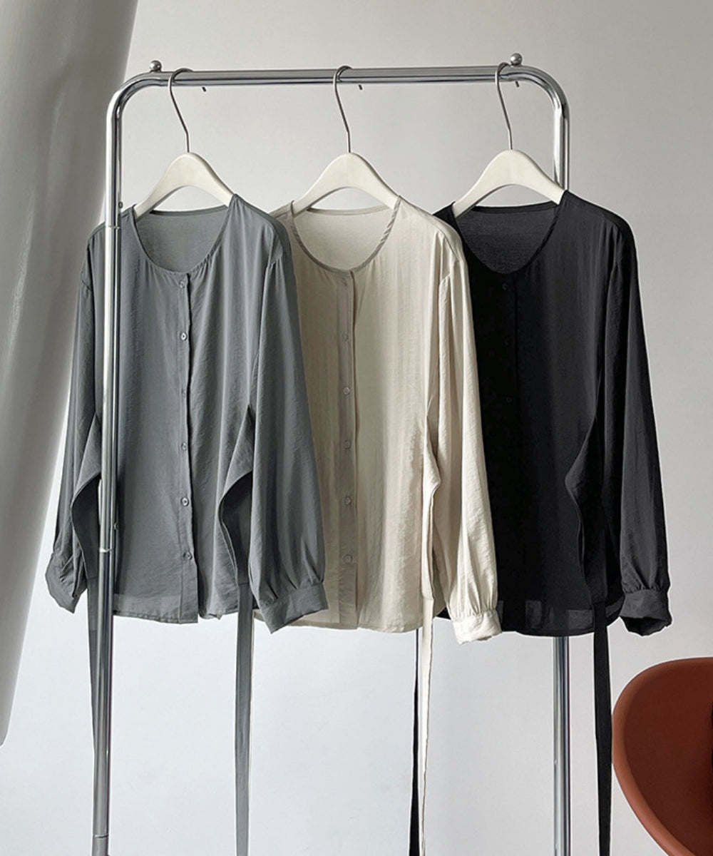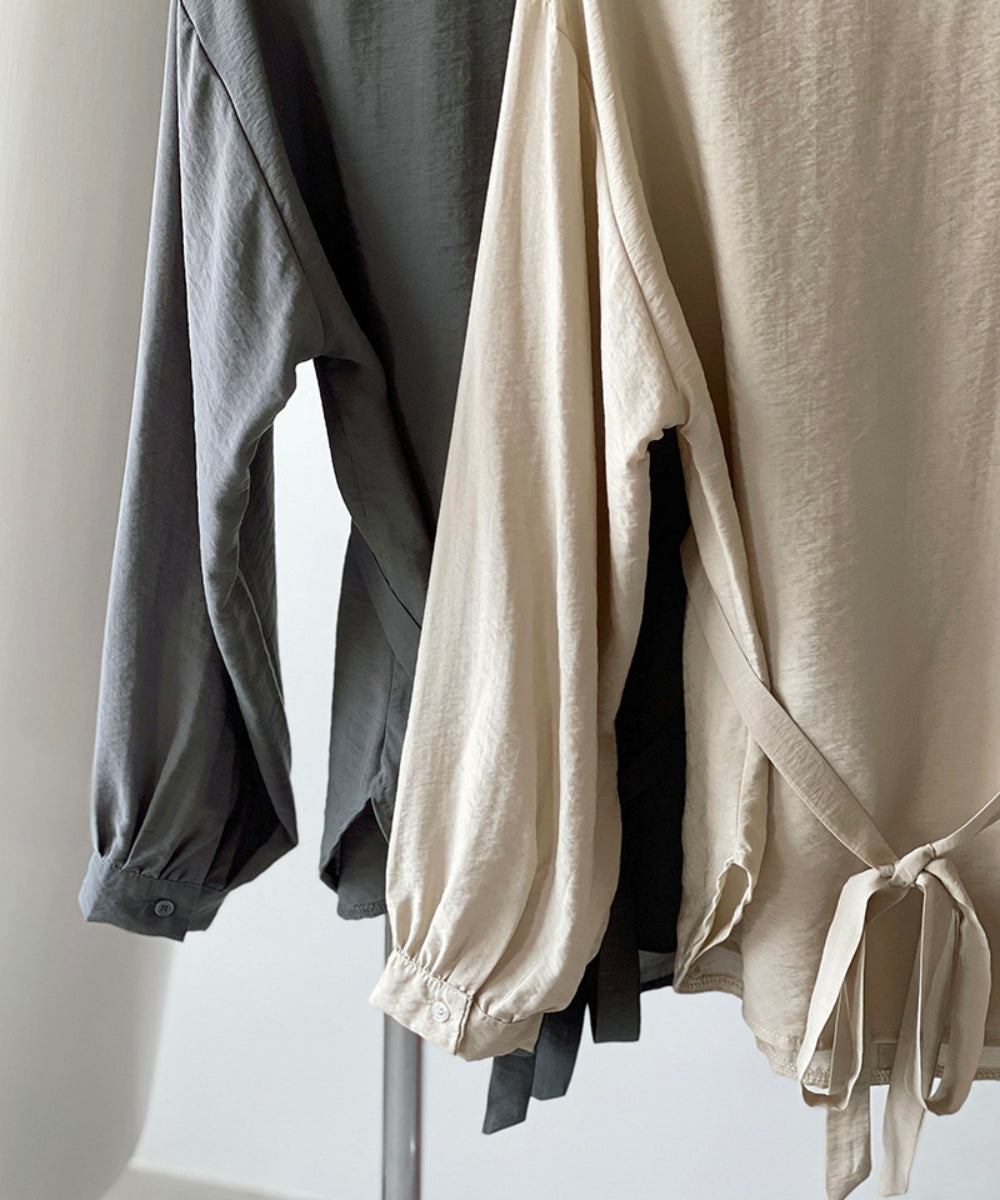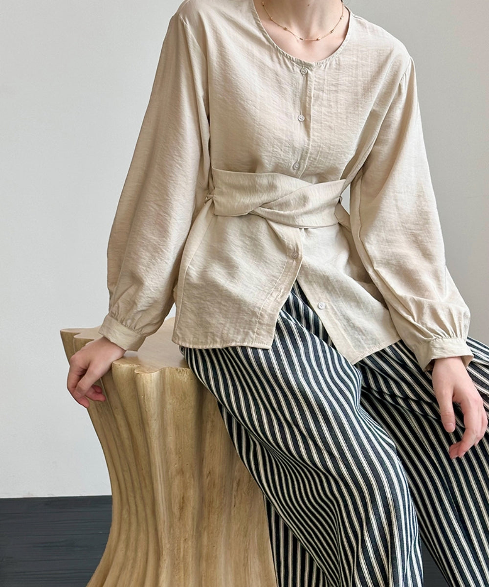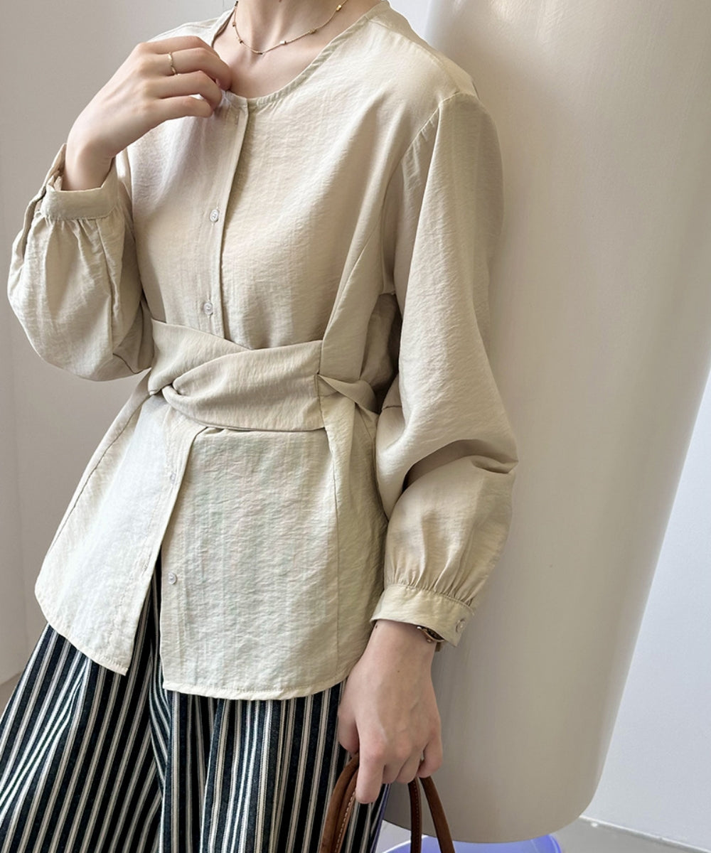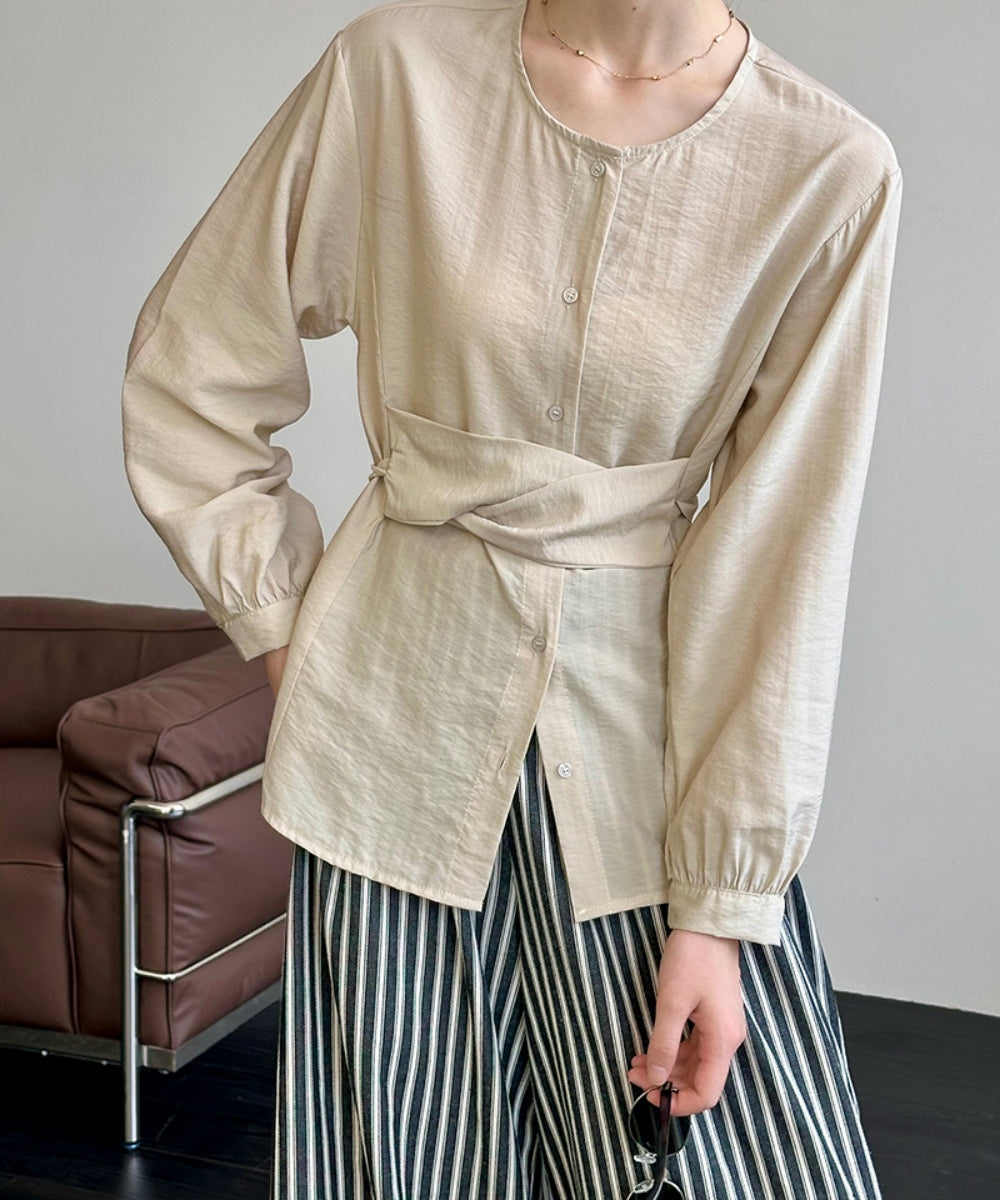 ウエストマークノーカラーブラウス