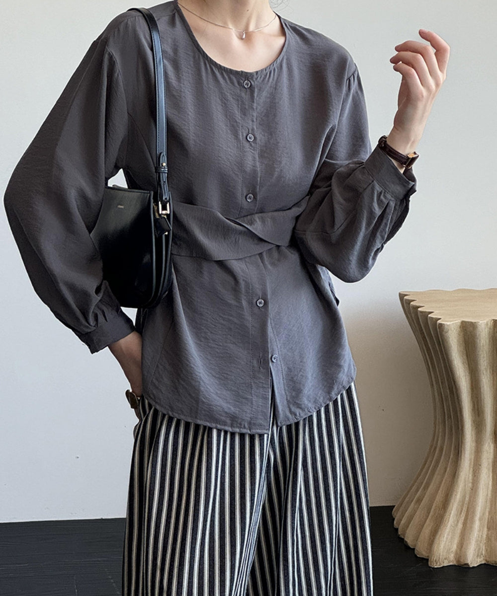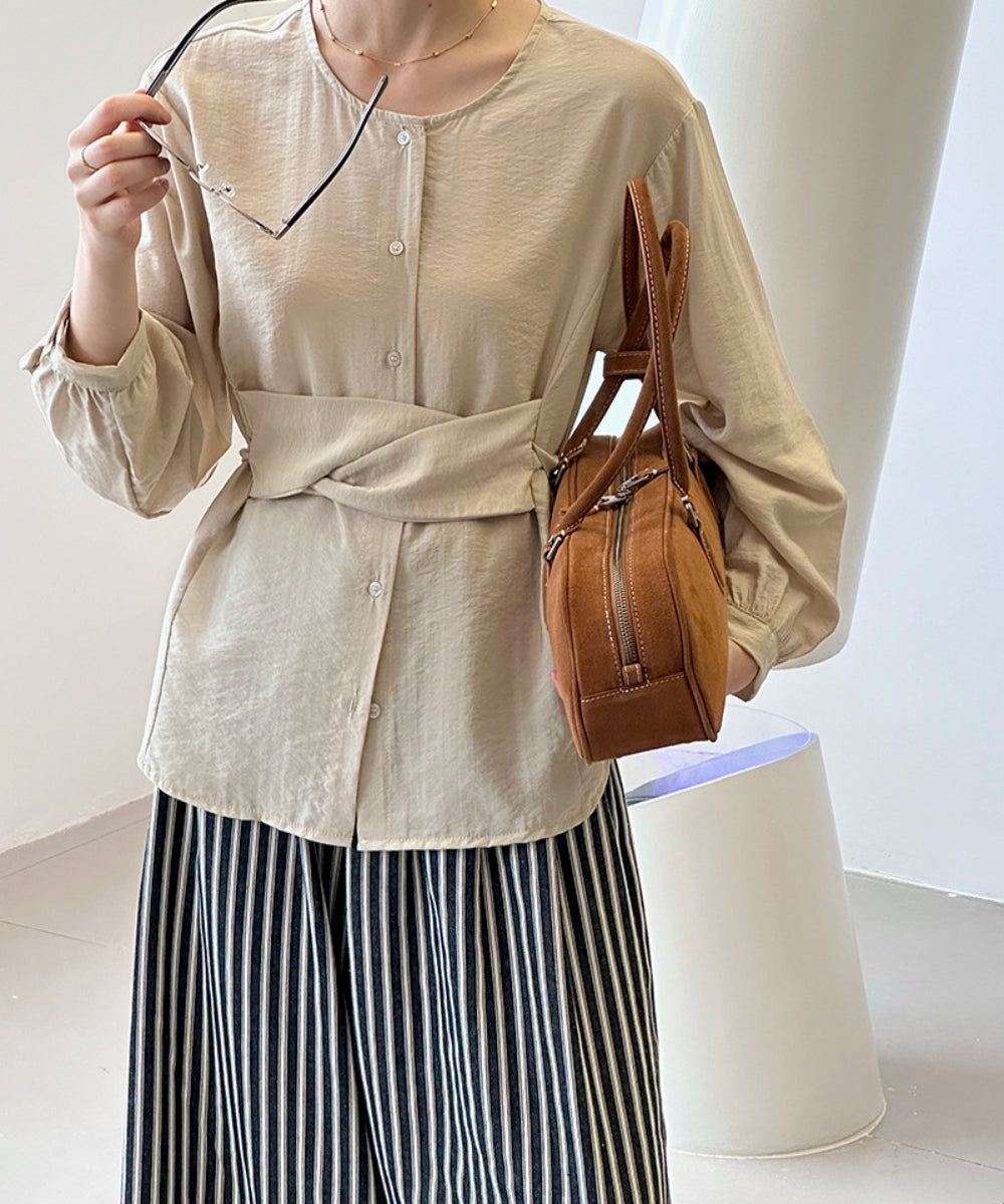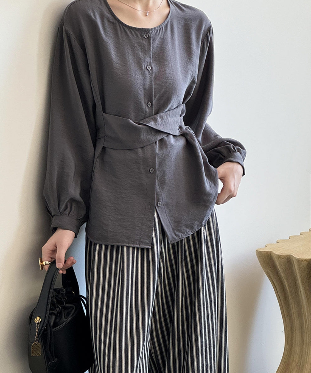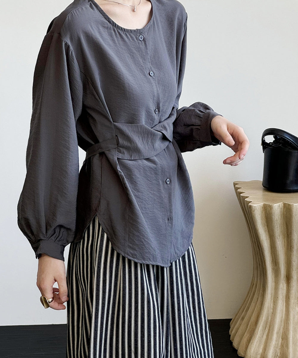 ウエストマークノーカラーブラウス
