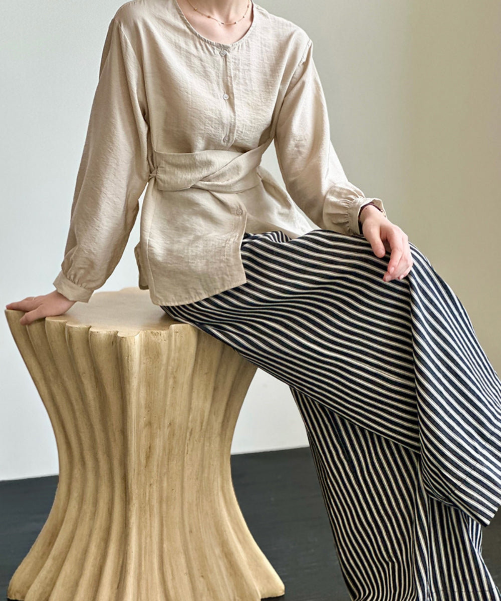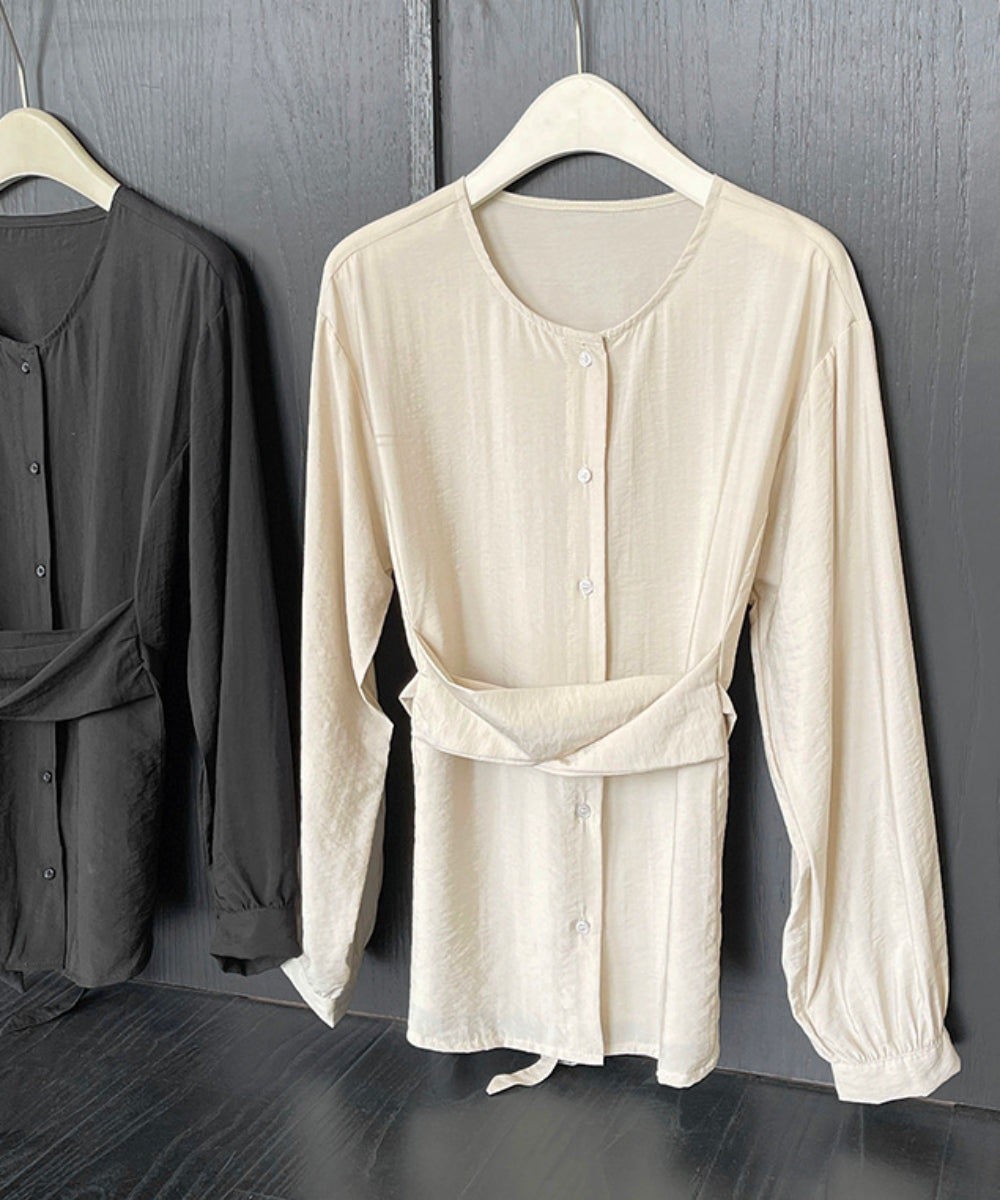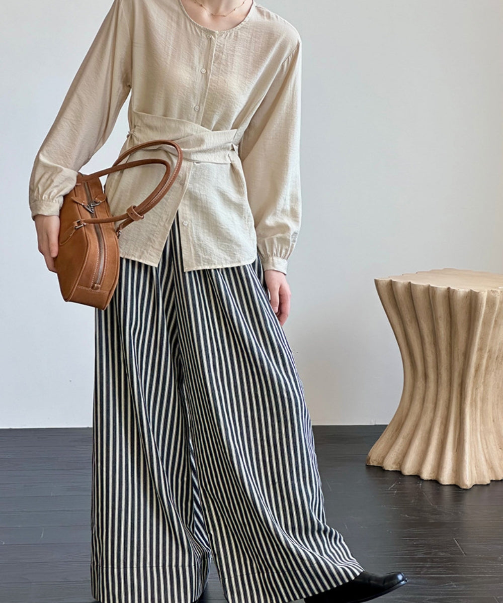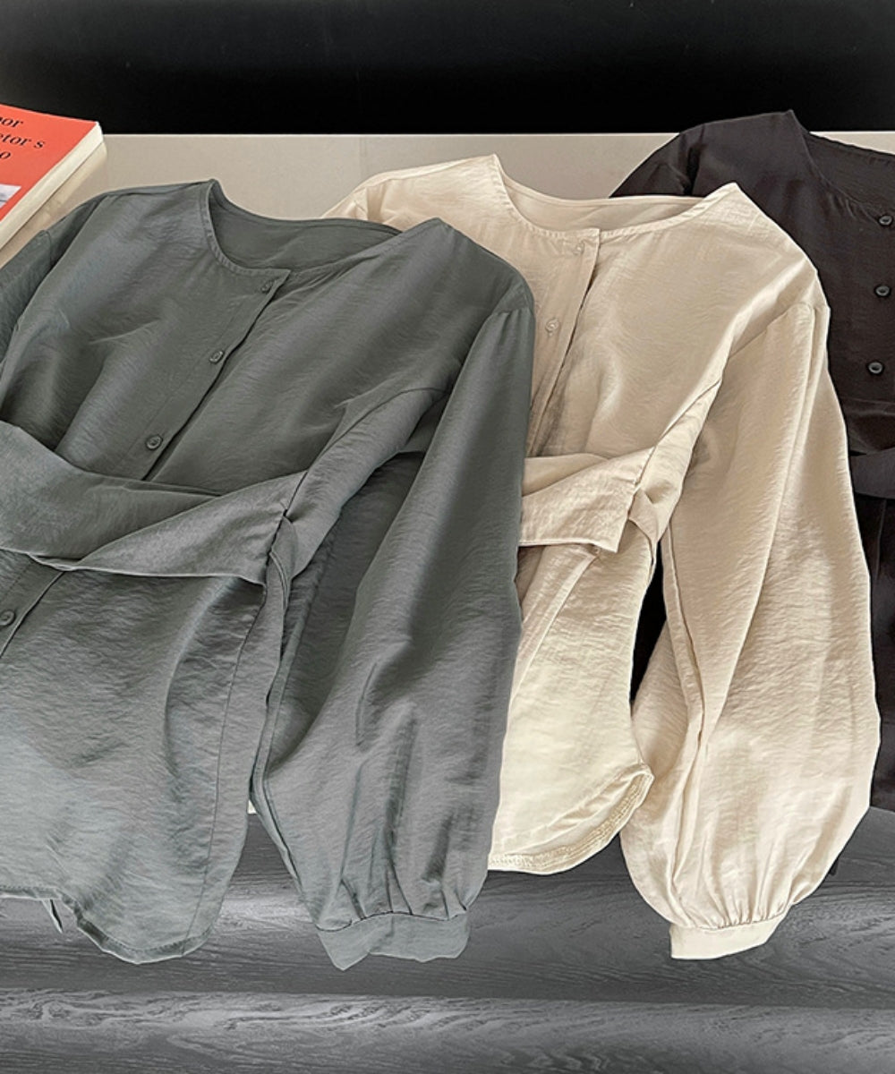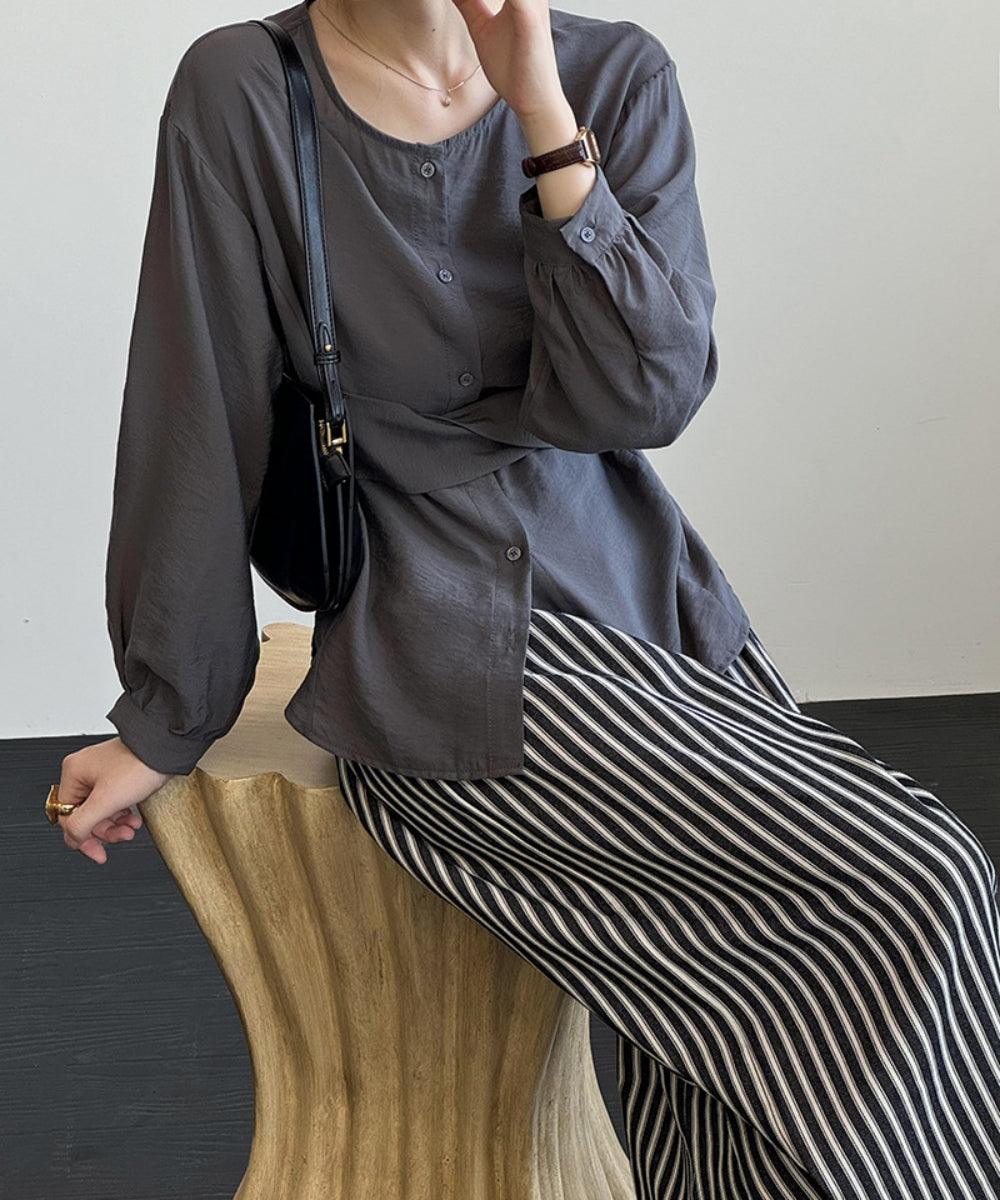 ウエストマークノーカラーブラウス