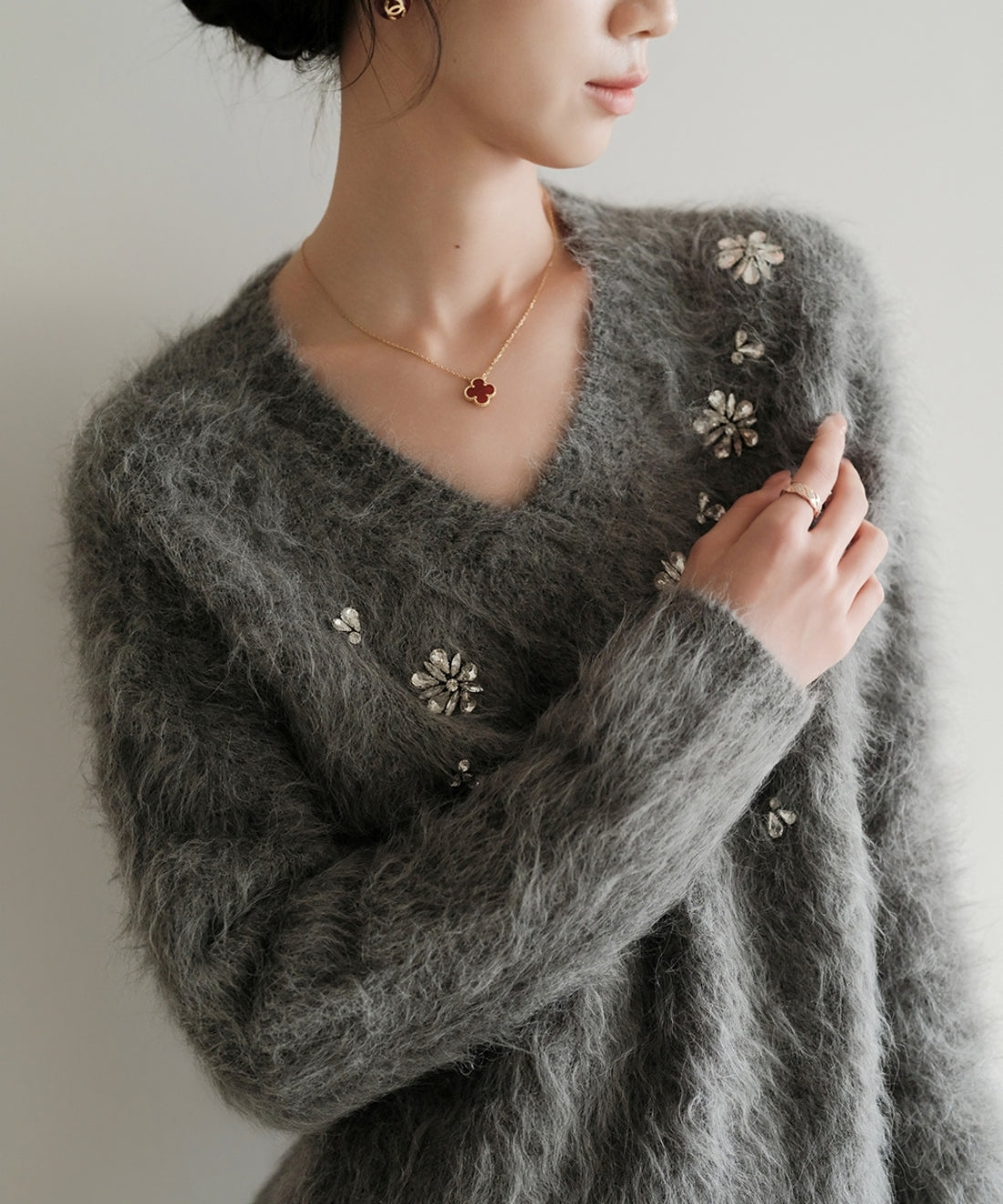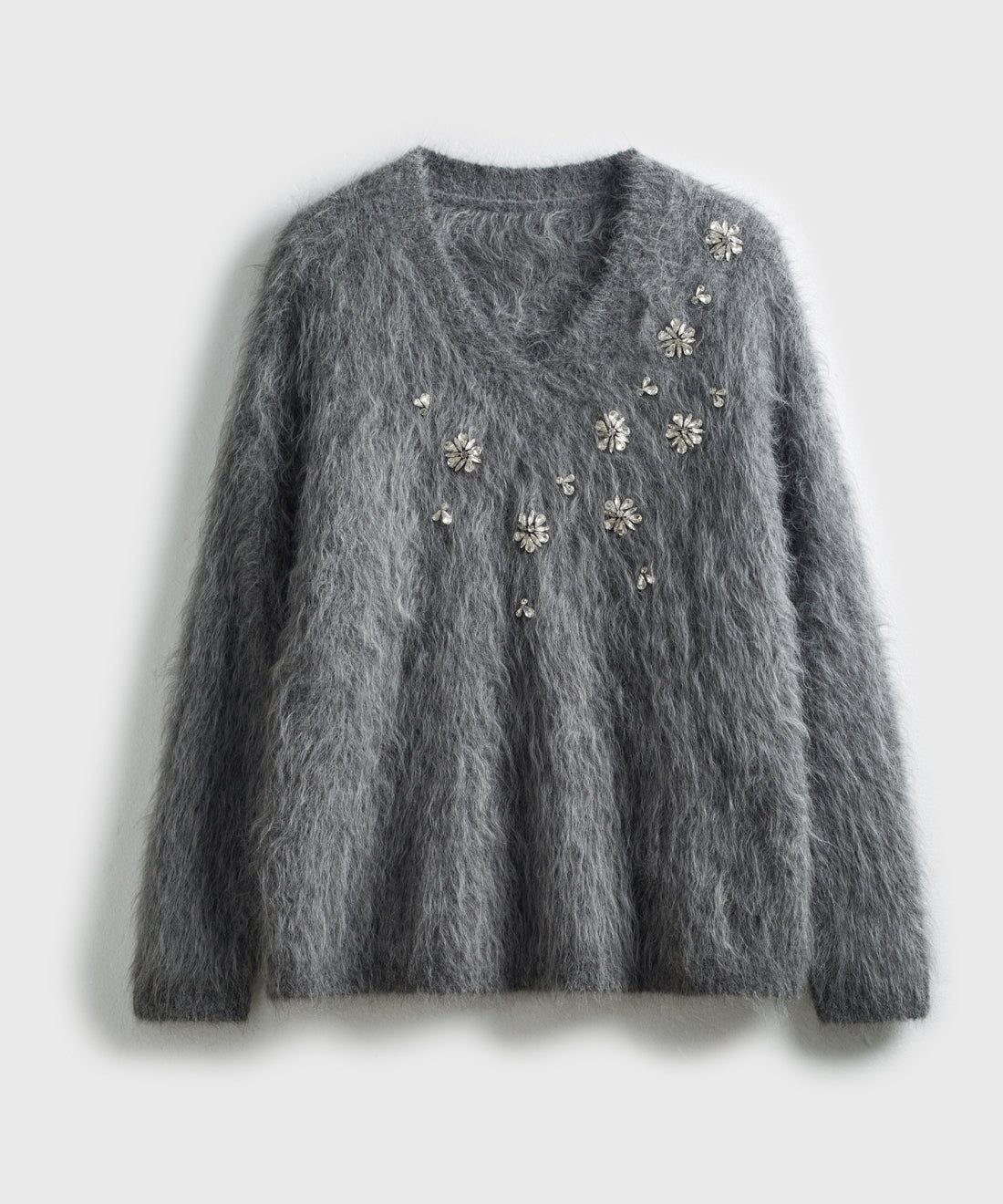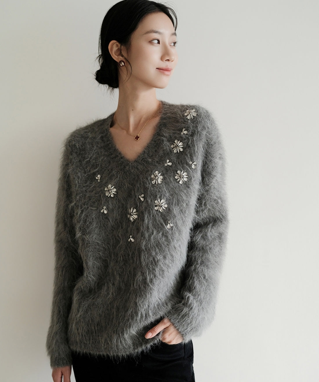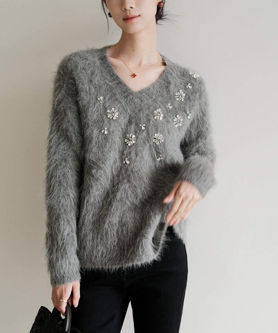 フラワービジューVネックニットプルオーバー