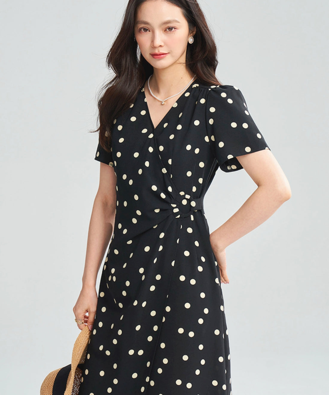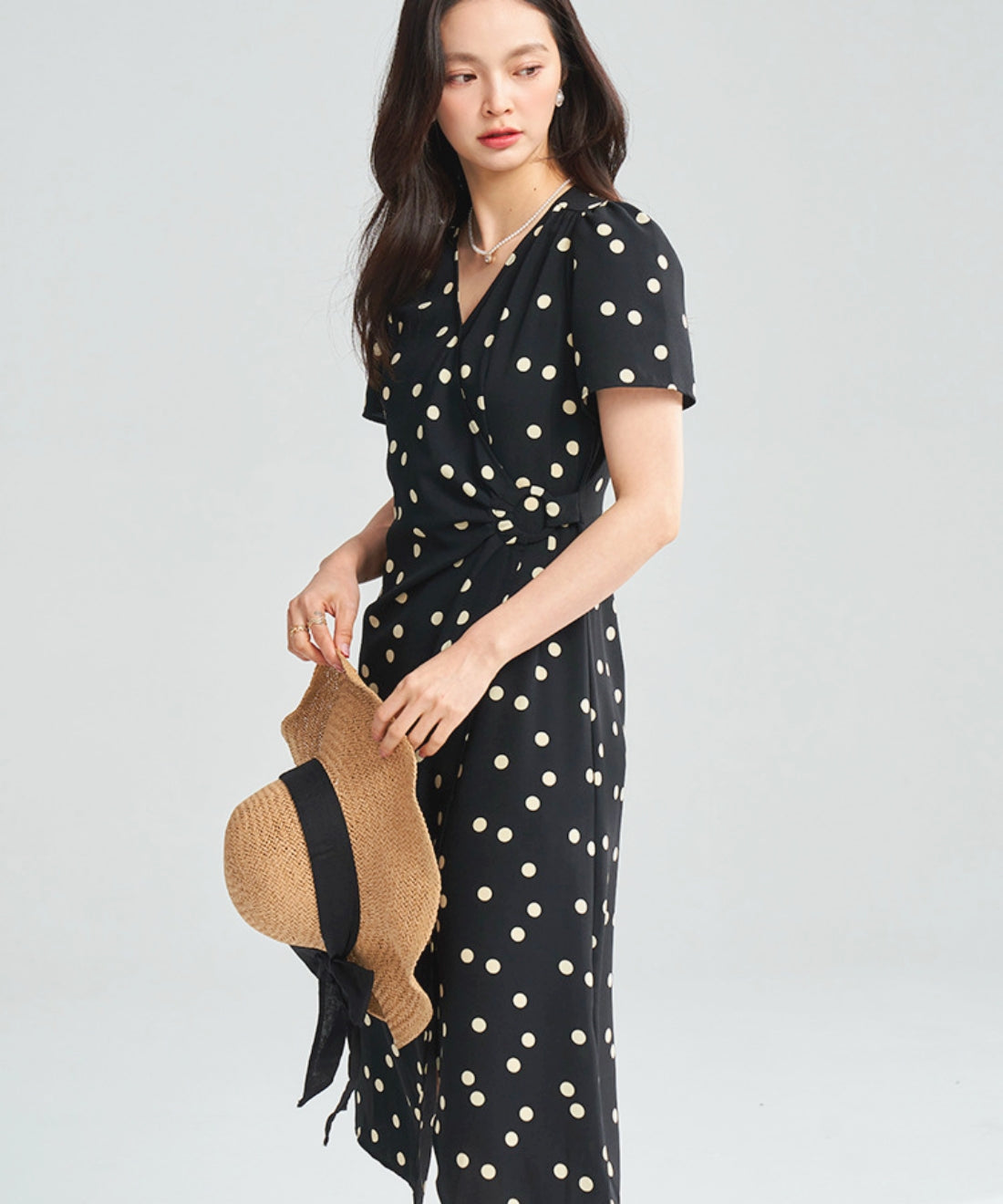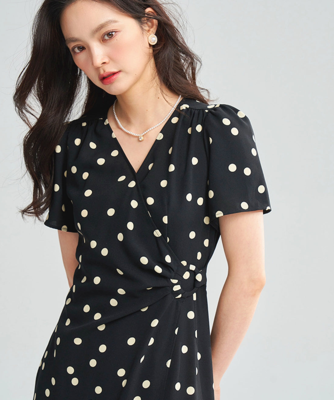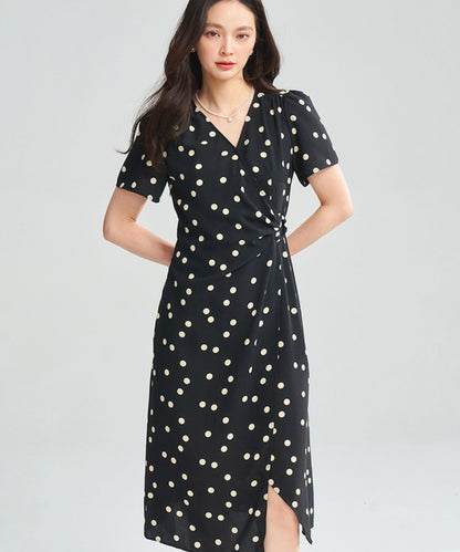 ドットVネックラップワンピース