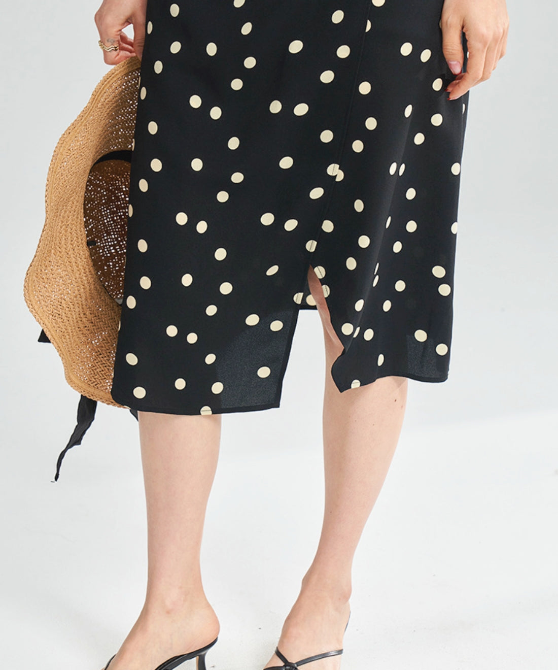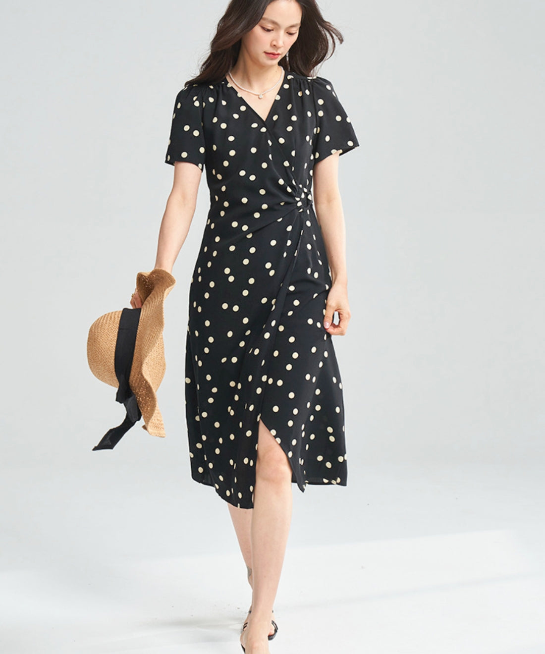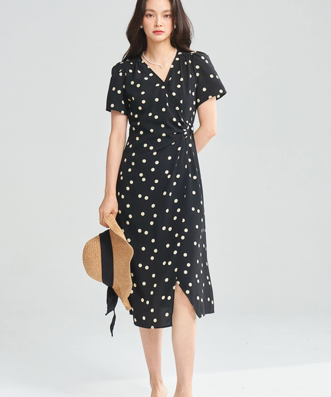 ドットVネックラップワンピース