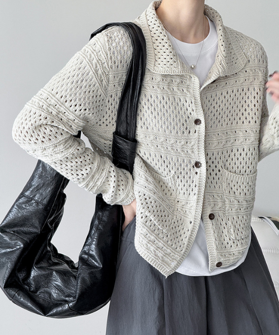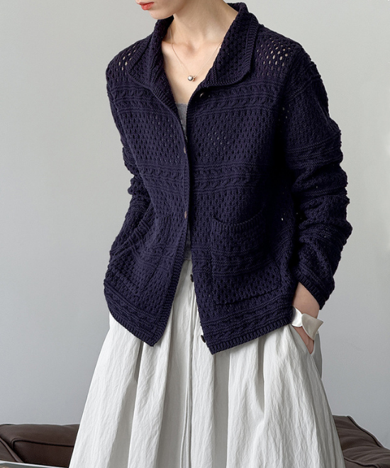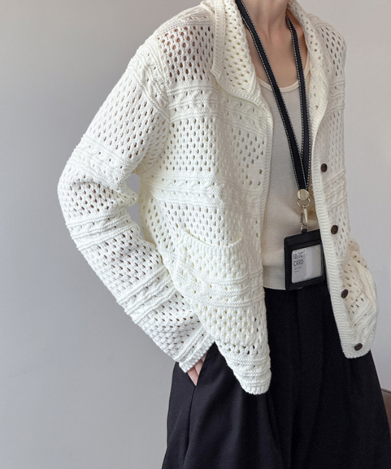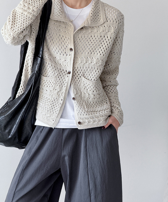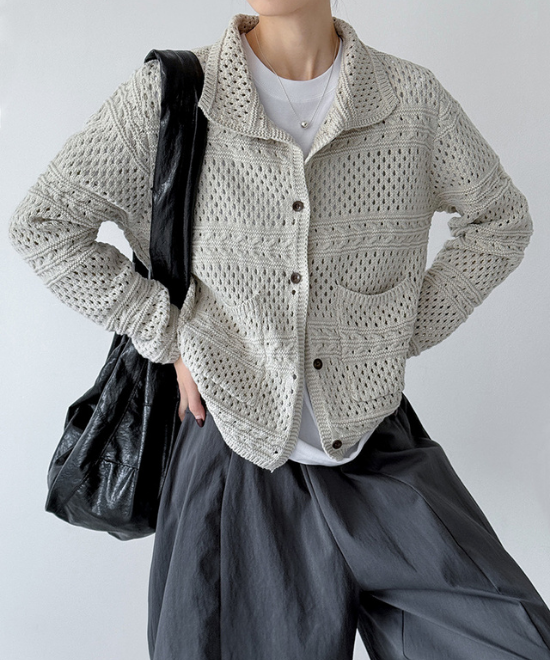 カギ編みニットルーズカーディガン
