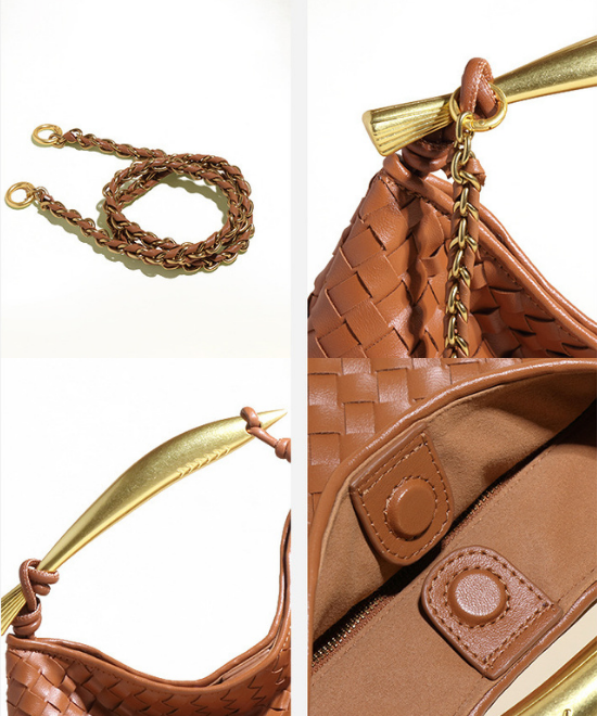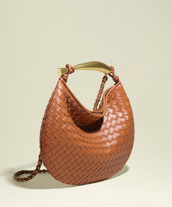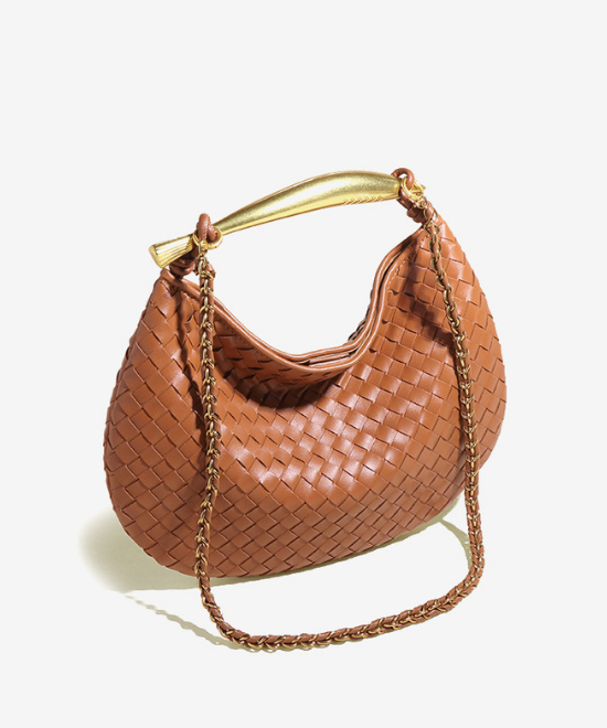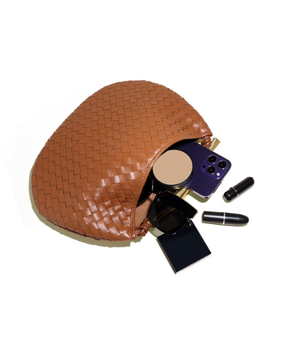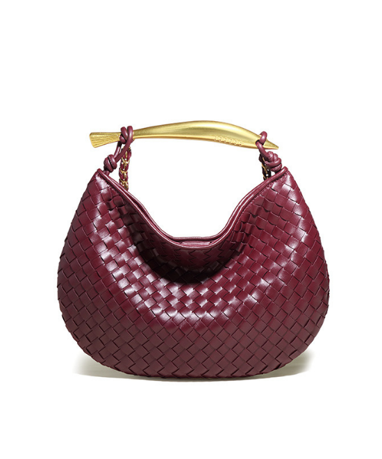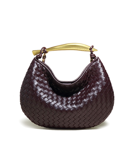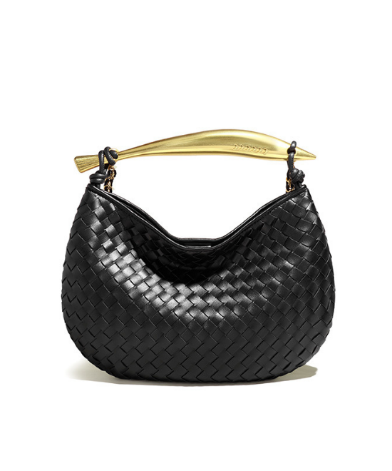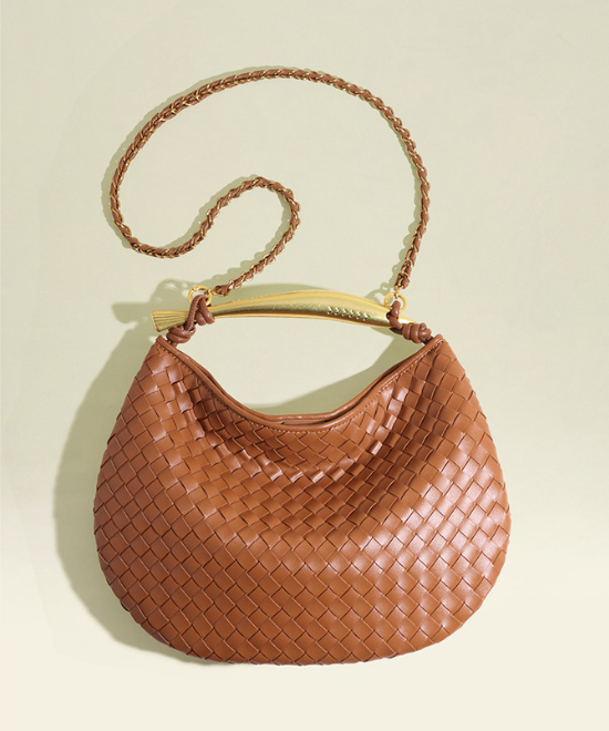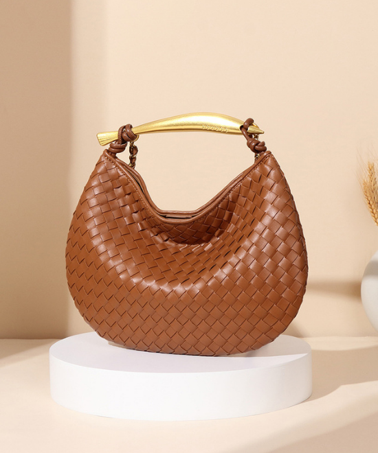 手織りテクスチャー三日月ハンドバッグ