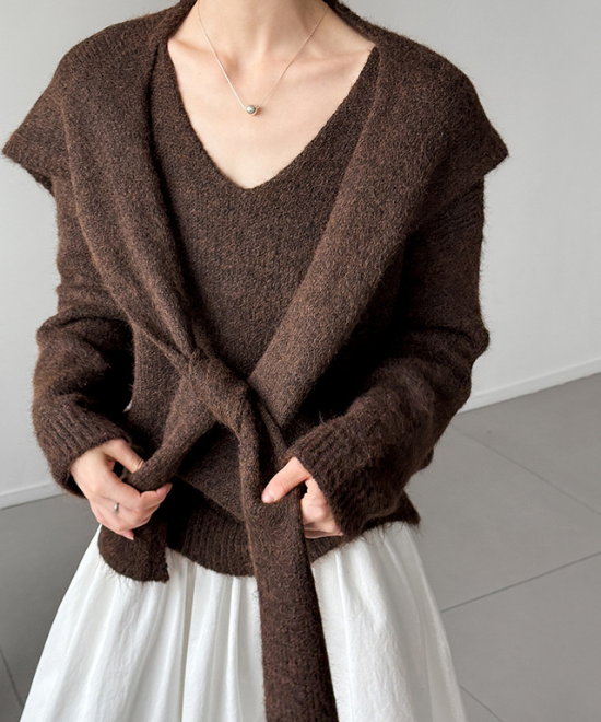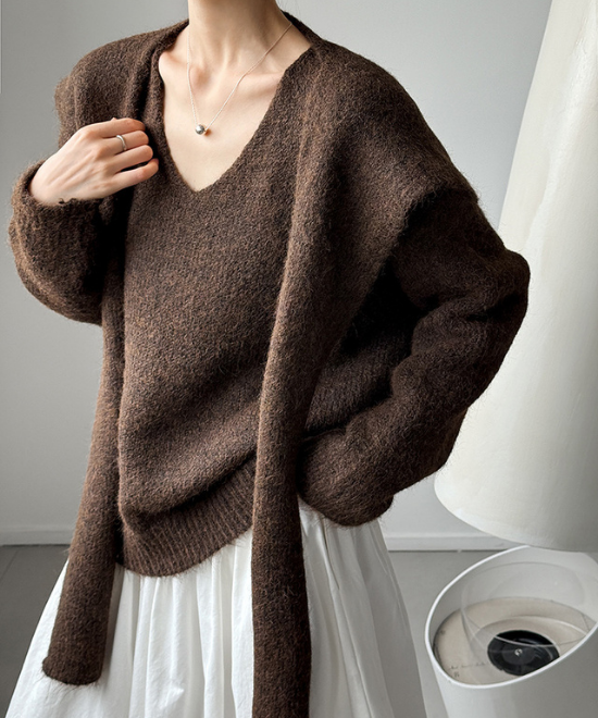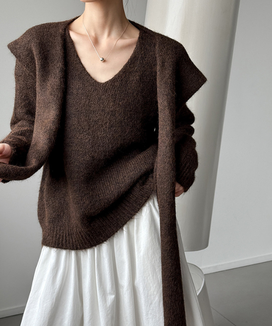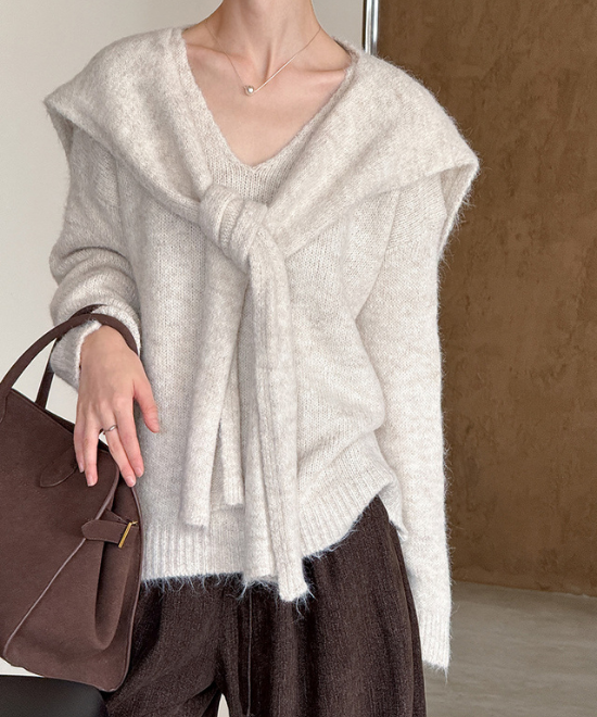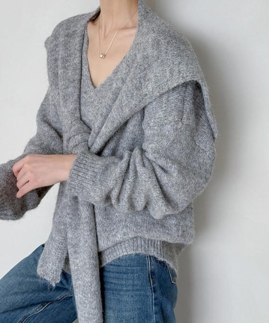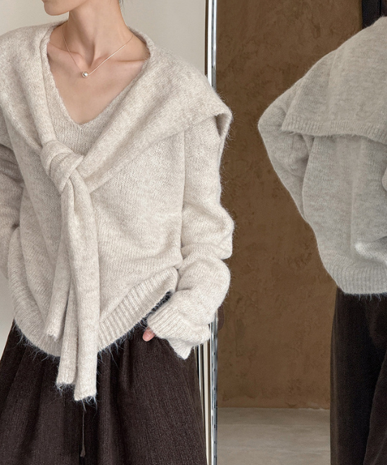 ウールニットトップス+ショールセット