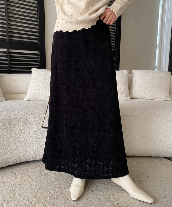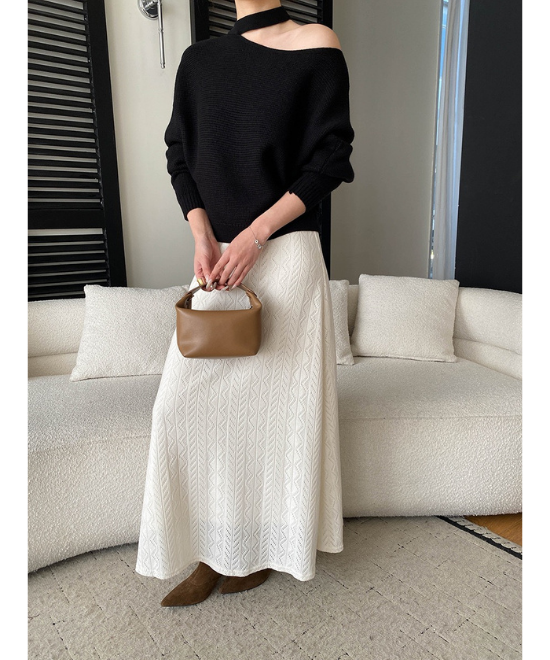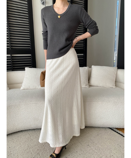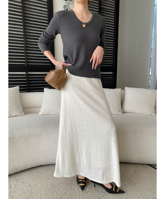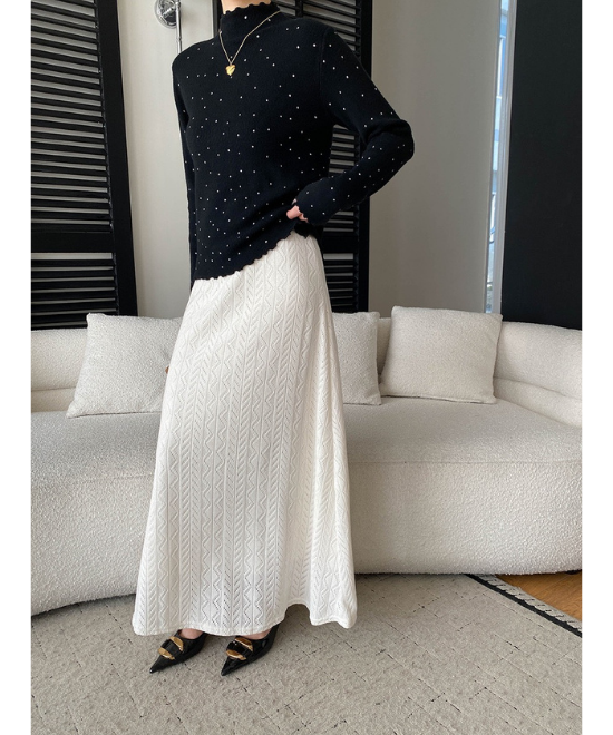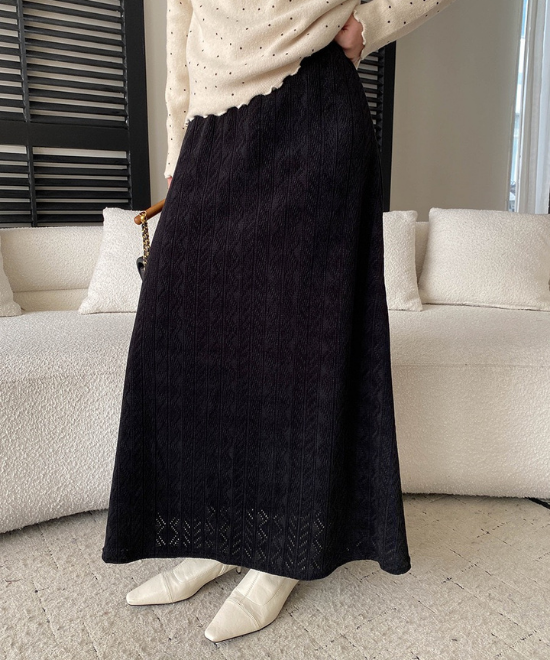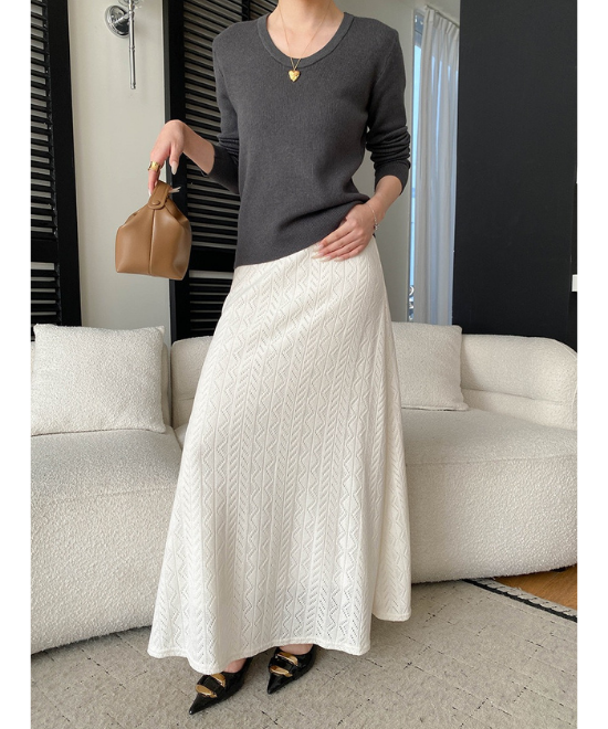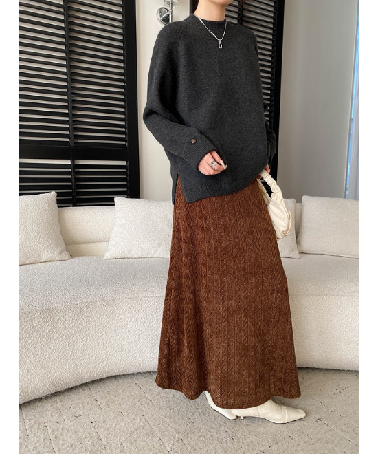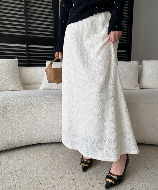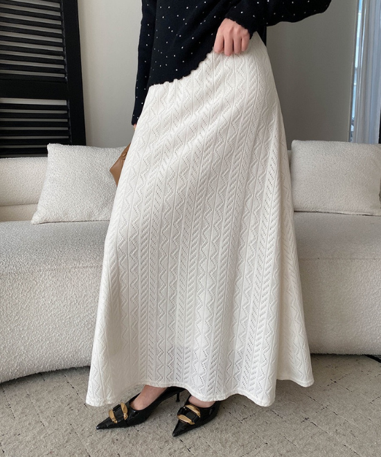 レースのような透け感もありながら、肌触りの気持ちいい素材でデザインされたフレアスカート。腰から足元に掛けて、広がり過ぎないシルエットが、体型カバーも叶えつつ女性らしさを引き出します。カラーは定番のホワイト、ブラックにこっくりとしたブラウンの3色展開。秋冬シーズンはもちろん、春先まで長く使えるアイテムです。