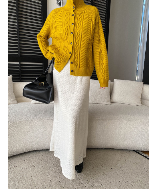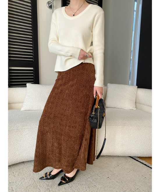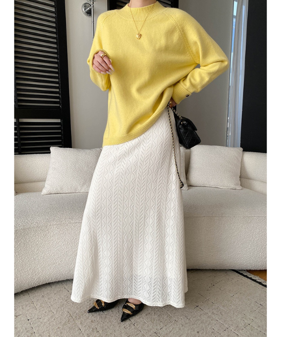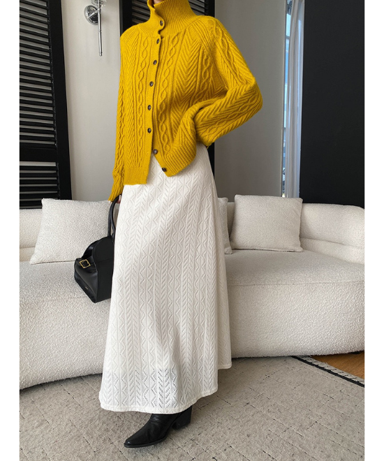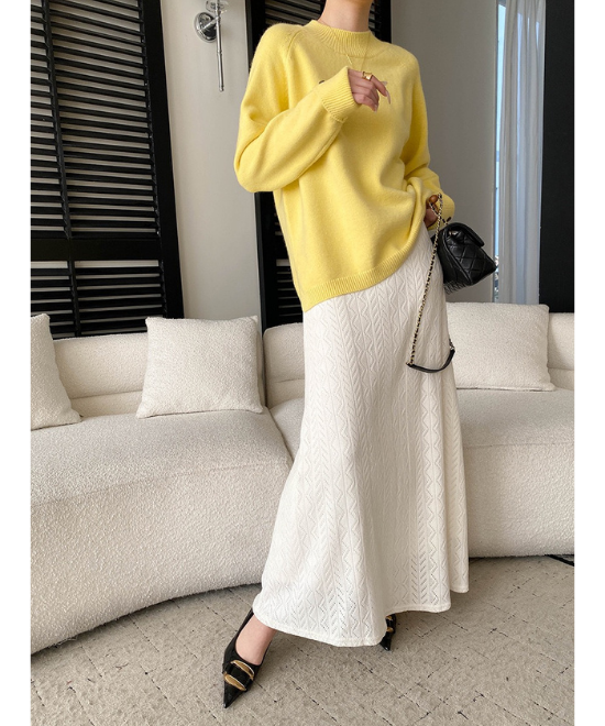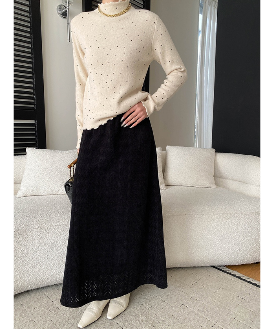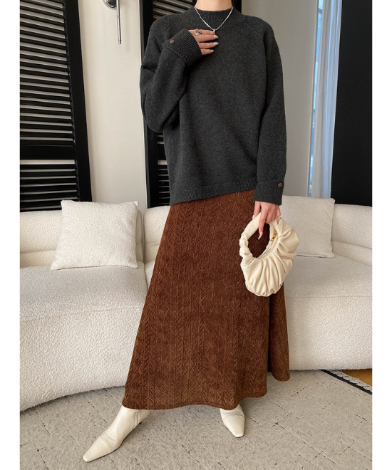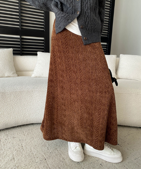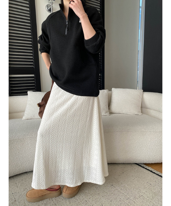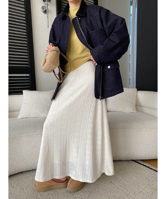 レースのような透け感もありながら、肌触りの気持ちいい素材でデザインされたフレアスカート。腰から足元に掛けて、広がり過ぎないシルエットが、体型カバーも叶えつつ女性らしさを引き出します。カラーは定番のホワイト、ブラックにこっくりとしたブラウンの3色展開。秋冬シーズンはもちろん、春先まで長く使えるアイテムです。