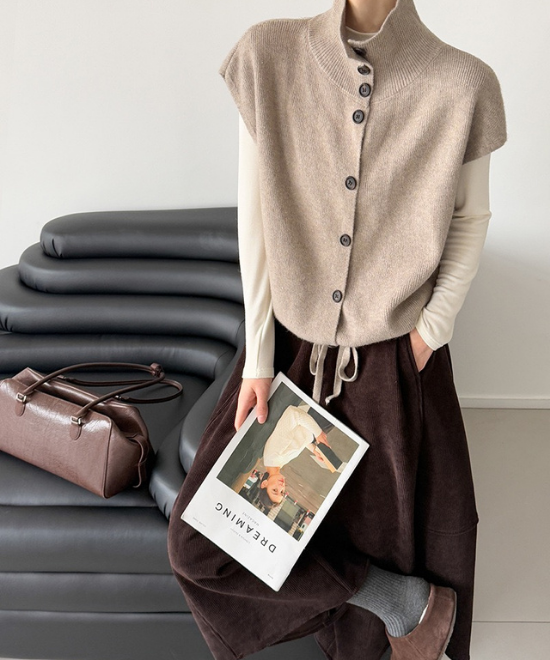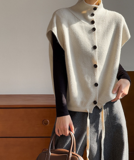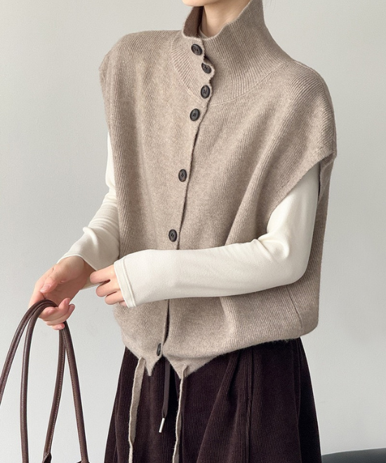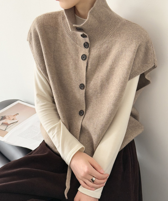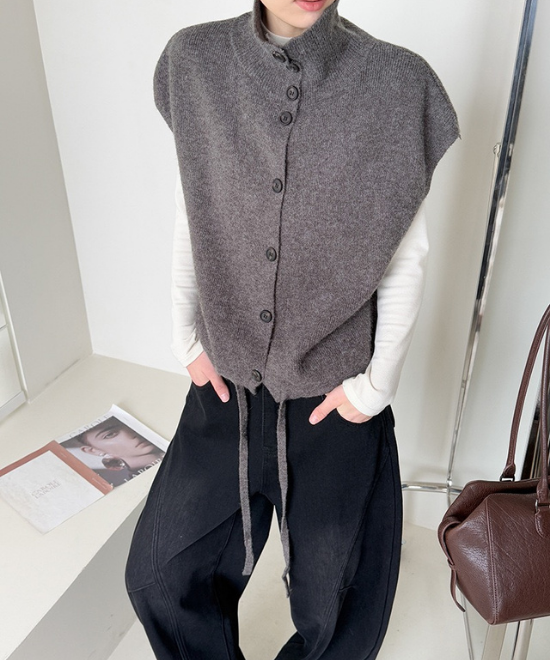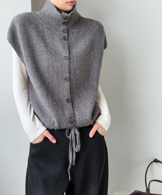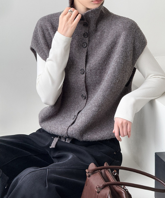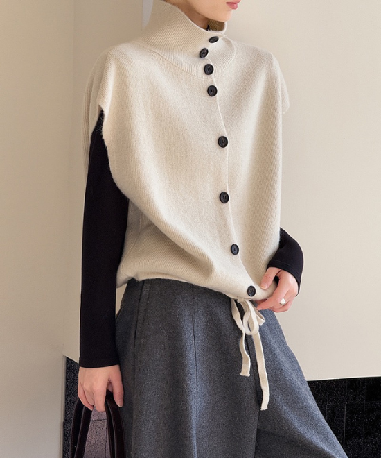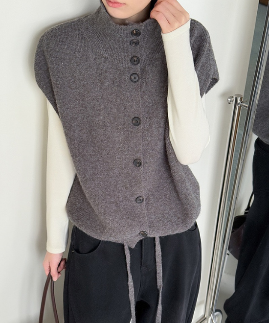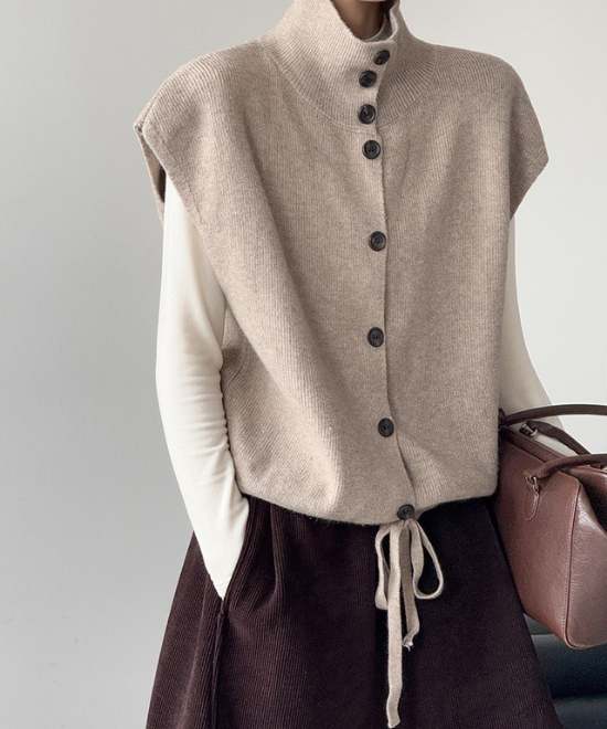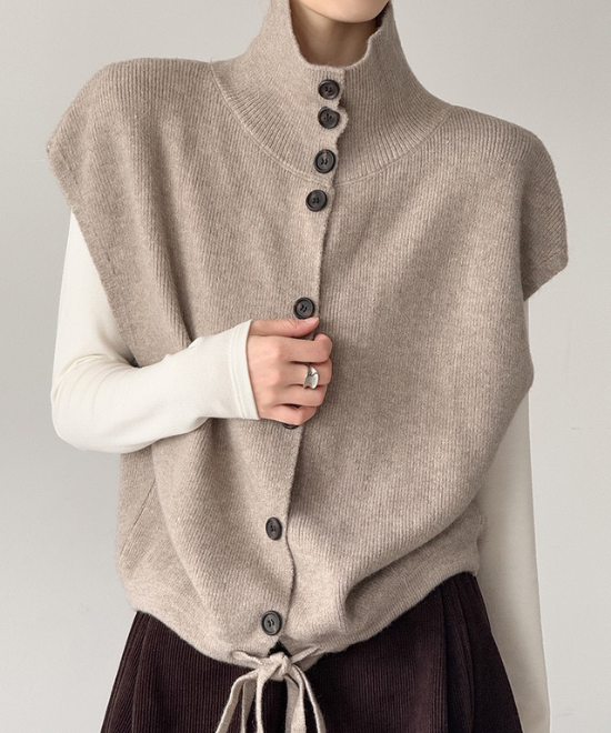 ハイネックボタンベスト
