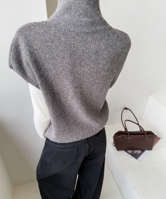 ハイネックタイプのニットベスト。