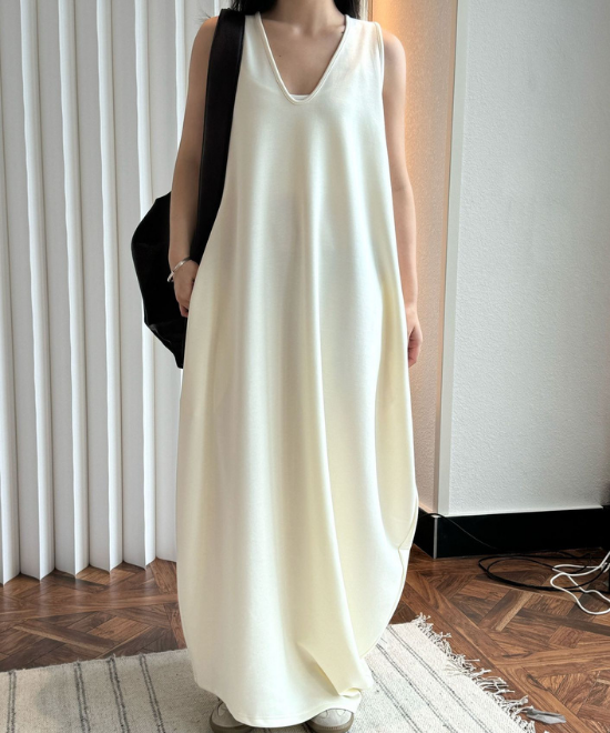 ルーズソフトタッチノースリーブワンピース