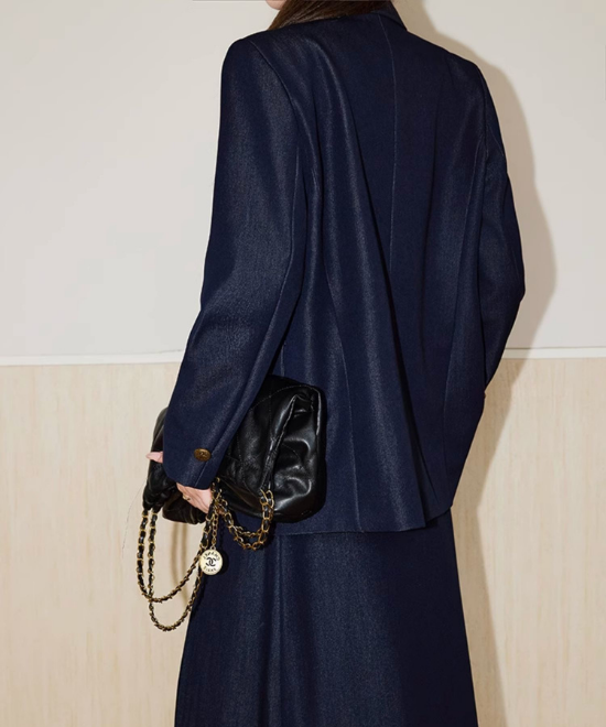 • POINT③「シンプル以上」を叶える深いネイビー: カジュアルすぎない、落ち着いたインディゴカラー。トレンドに左右されず、見慣れた手持ちのワンピースやパンツを、一瞬で「よそ行き」の表情に変えてくれます。