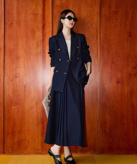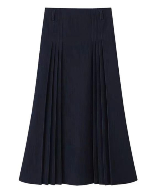 【数量限定】デニムを「品格」へ。腰回りを削ぎ落とし、360度ドラマチックに揺れる「金ボタン・プリーツデニムスカート」