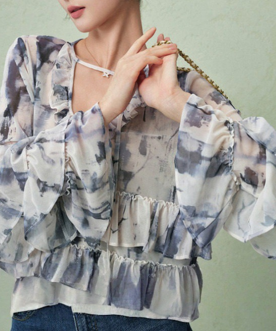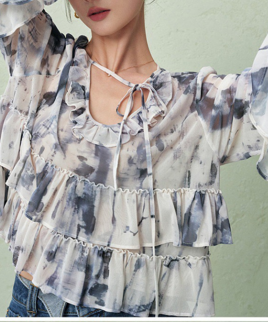 ティアードフリルタイダイブラウス
