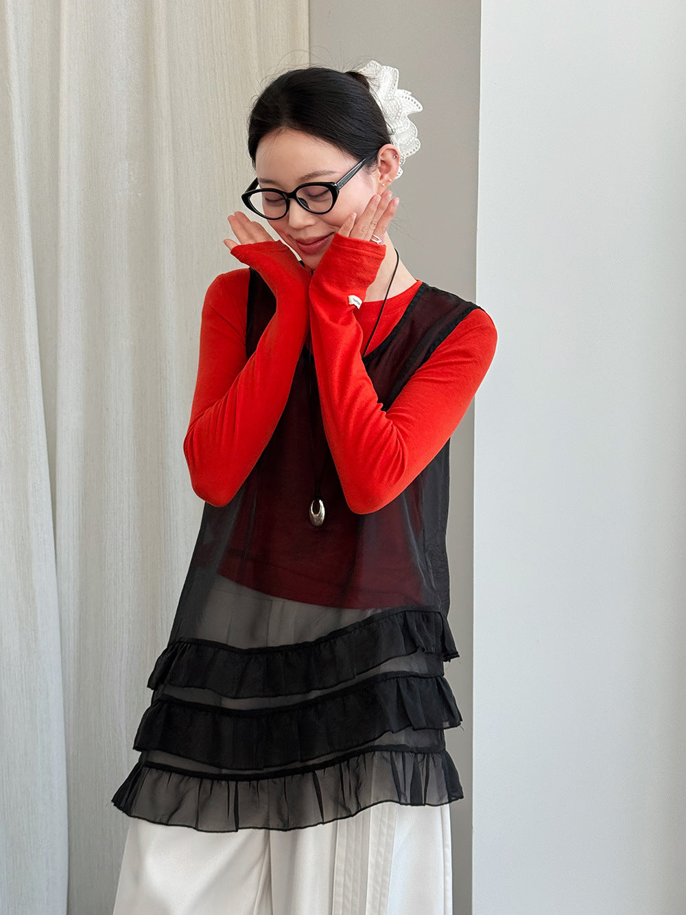 今季のトレンドでもレイヤードスタイルに最適なフリルやシアー素材の「ワンピース」