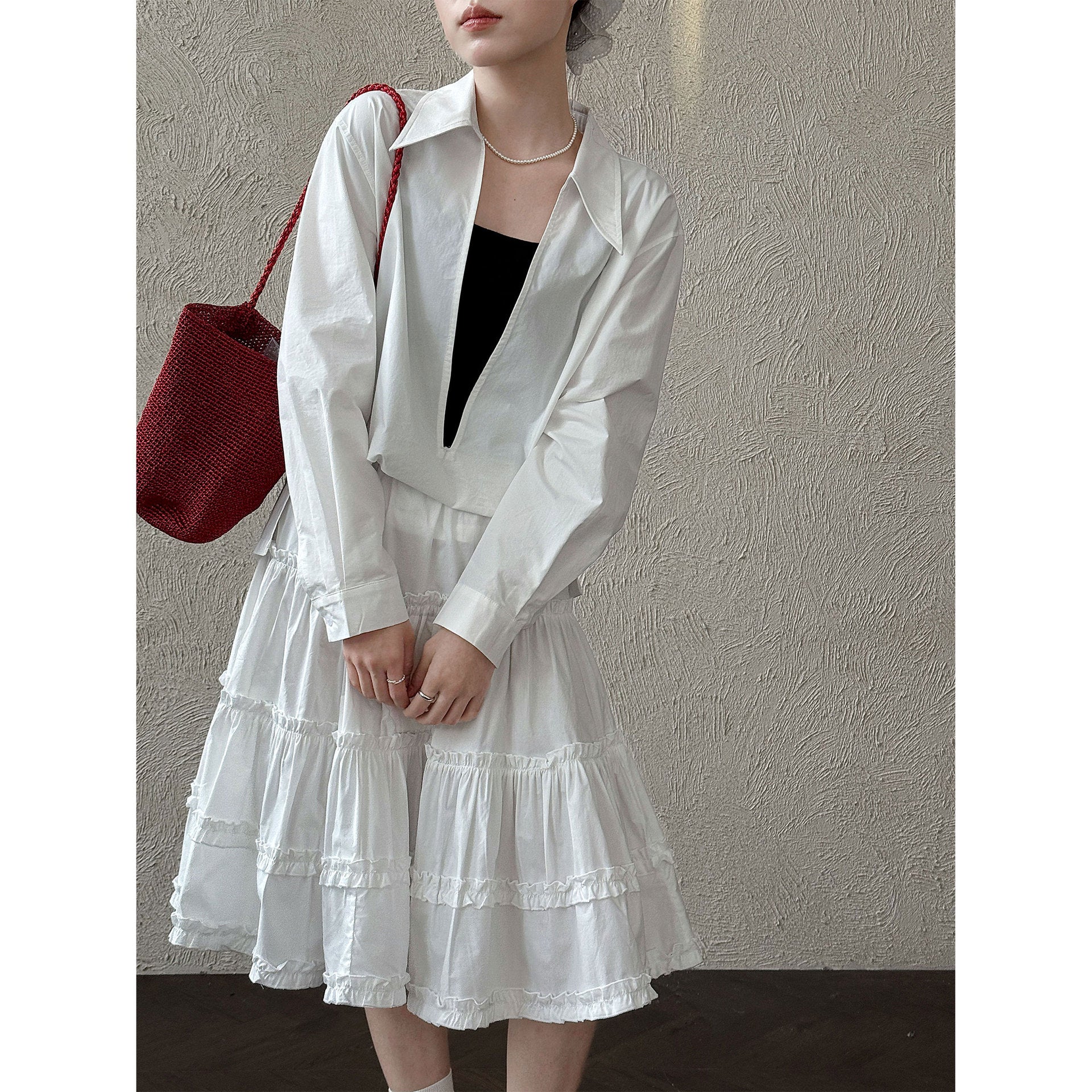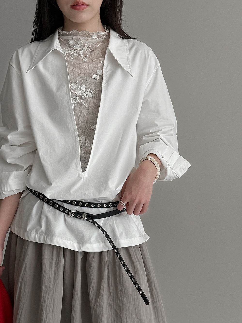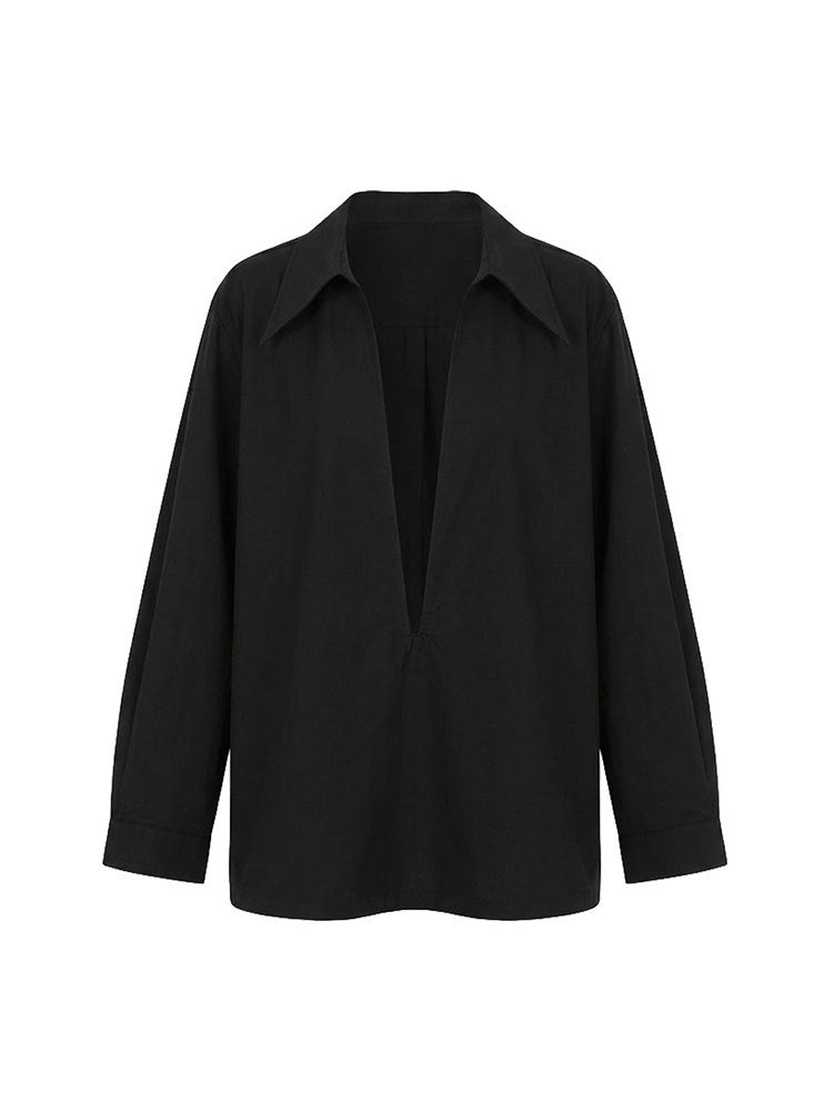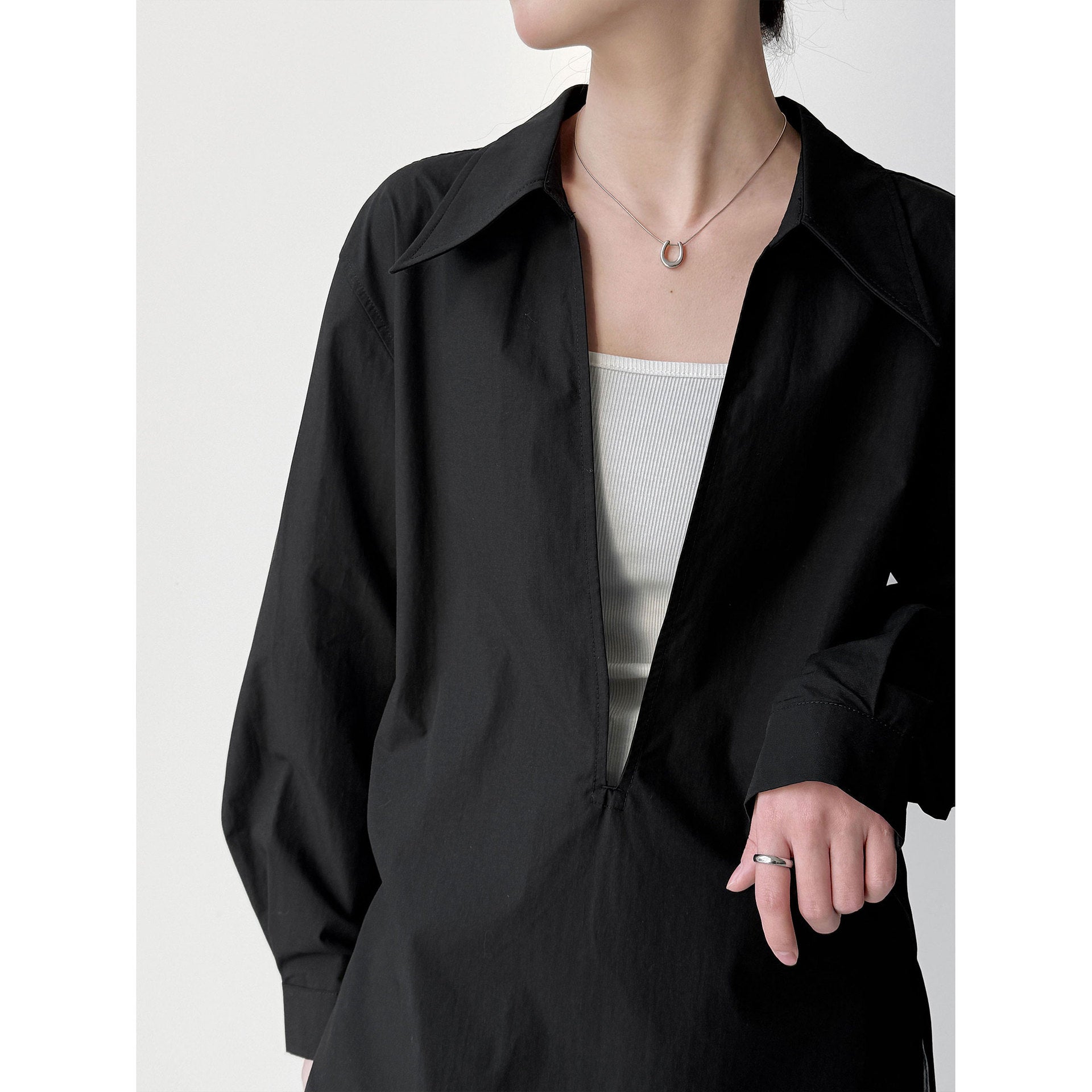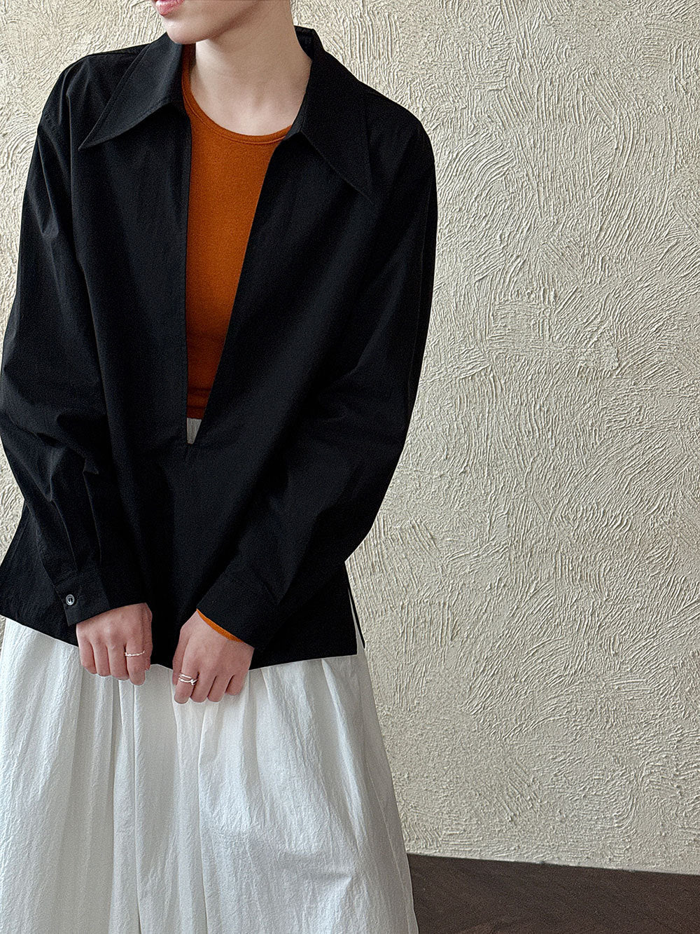 「隠す」より「魅せる」という大人の選択で、顔周りをすっきり見せる「ディープVネックシャツ」